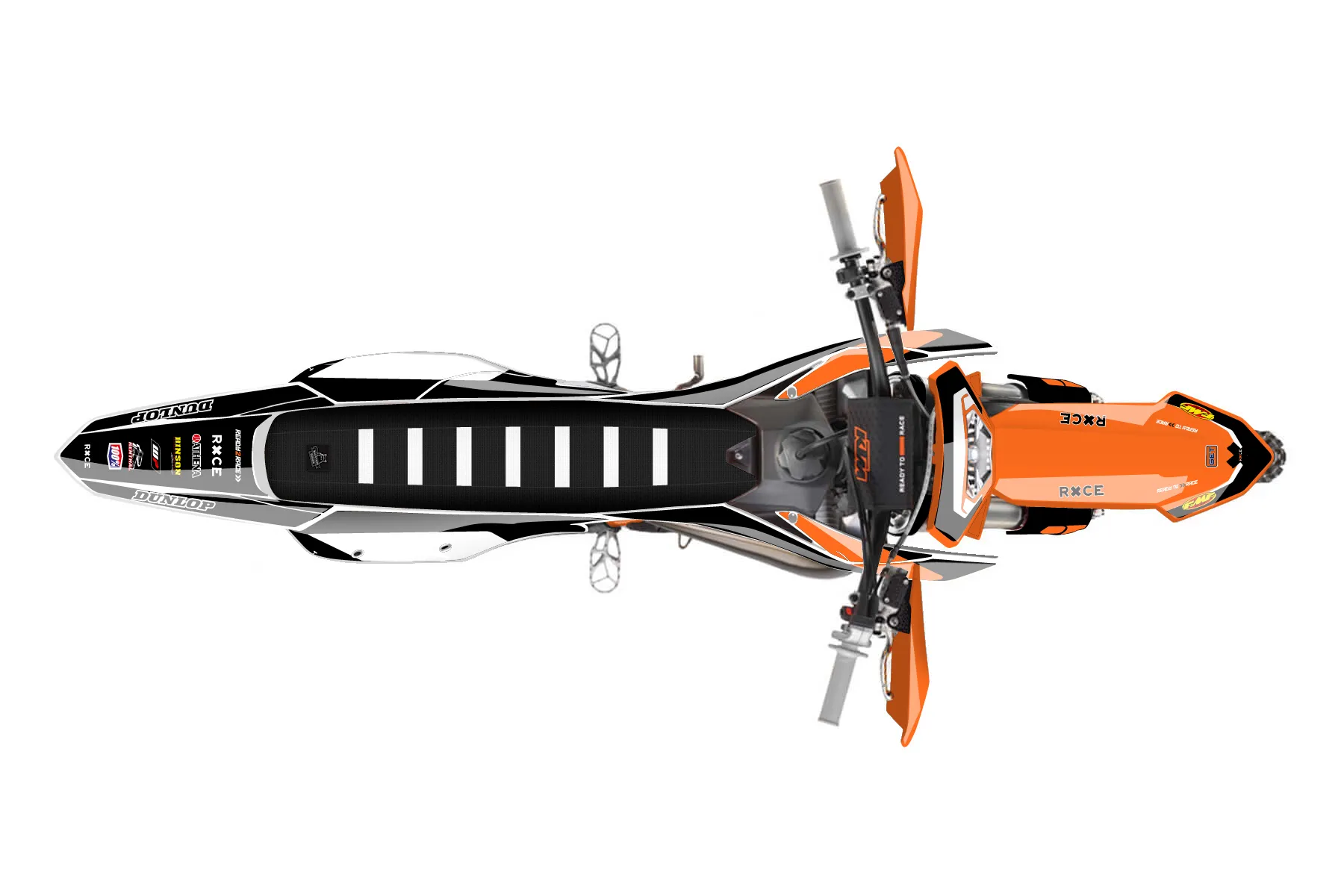«Answer» — готовый комплект графики серии Flow для KTM Enduro Graphic Kit KTM EXC 300 2024. В комплекте: графика на бак и боковые облицовки, крылья (переднее и заднее), передний щиток, номерные таблички, защита вилки. Материал: ПВХ-винил 80 мкр с холодной ламинацией 300 мкр, общая толщина 380 мкр; покрытие глянцевое или матовое на выбор. Устойчив к UV-излучению, воде, бензину и мойке высокого давления. Клей акриловый на сольвентной основе — постоянный, для гибких пластиков. На простых поверхностях монтируется без нагрева; для сложных изгибов рекомендуем фен. Этот пресет можно заказать как есть или взять за основу в конструкторе: поменять цвета, добавить стартовый номер и свой бренд. Производство — 3–5 рабочих дней, доставка по России СДЭКом или Почтой, по СНГ — курьерскими службами.
