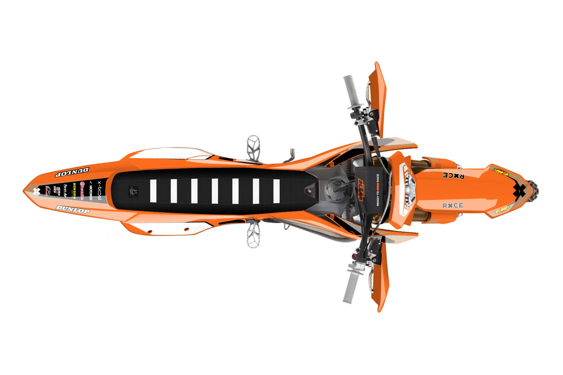 «Bang» — готовый комплект графики серии Flow для KTM Enduro Graphic Kit KTM EXC 300 2024. В комплекте: графика на бак и боковые облицовки, крылья (переднее и заднее), передний щиток, номерные таблички, защита вилки. Материал: ПВХ-винил 80 мкр с холодной ламинацией 300 мкр, общая толщина 380 мкр; покрытие глянцевое или матовое на выбор. Устойчив к UV-излучению, воде, бензину и мойке высокого давления. Клей акриловый на сольвентной основе — постоянный, для гибких пластиков. На простых поверхностях монтируется без нагрева; для сложных изгибов рекомендуем фен. Этот пресет можно заказать как есть или взять за основу в конструкторе: поменять цвета, добавить стартовый номер и свой бренд. Производство — 3–5 рабочих дней, доставка по России СДЭКом или Почтой, по СНГ — курьерскими службами.