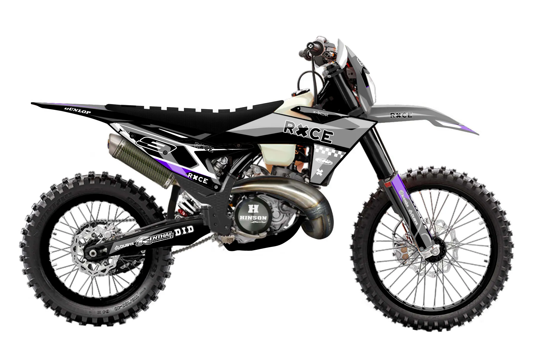«Cyber Pirate» — готовый комплект графики серии Flow для KTM Enduro Graphic Kit KTM EXC 300 2024. В комплекте: графика на бак и боковые облицовки, крылья (переднее и заднее), передний щиток, номерные таблички, защита вилки. Материал: ПВХ-винил 80 мкр с холодной ламинацией 300 мкр, общая толщина 380 мкр; покрытие глянцевое или матовое на выбор. Устойчив к UV-излучению, воде, бензину и мойке высокого давления. Клей акриловый на сольвентной основе — постоянный, для гибких пластиков. На простых поверхностях монтируется без нагрева; для сложных изгибов рекомендуем фен. Этот пресет можно заказать как есть или взять за основу в конструкторе: поменять цвета, добавить стартовый номер и свой бренд. Производство — 3–5 рабочих дней, доставка по России СДЭКом или Почтой, по СНГ — курьерскими службами.