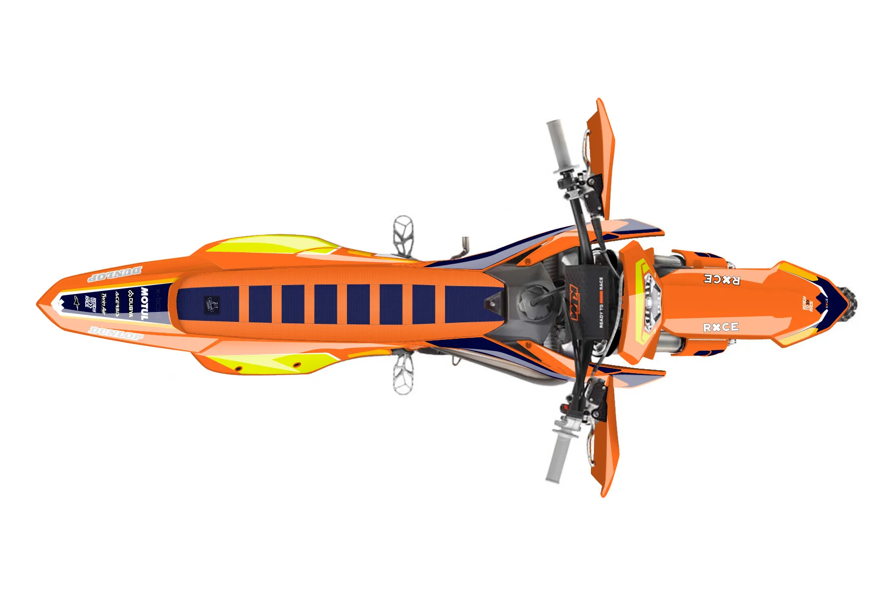 «KTM 300» — готовый комплект графики серии Flow для KTM Enduro Graphic Kit KTM EXC 300 2024. В комплекте: графика на бак и боковые облицовки, крылья (переднее и заднее), передний щиток, номерные таблички, защита вилки. Материал: ПВХ-винил 80 мкр с холодной ламинацией 300 мкр, общая толщина 380 мкр; покрытие глянцевое или матовое на выбор. Устойчив к UV-излучению, воде, бензину и мойке высокого давления. Клей акриловый на сольвентной основе — постоянный, для гибких пластиков. На простых поверхностях монтируется без нагрева; для сложных изгибов рекомендуем фен. Этот пресет можно заказать как есть или взять за основу в конструкторе: поменять цвета, добавить стартовый номер и свой бренд. Производство — 3–5 рабочих дней, доставка по России СДЭКом или Почтой, по СНГ — курьерскими службами.