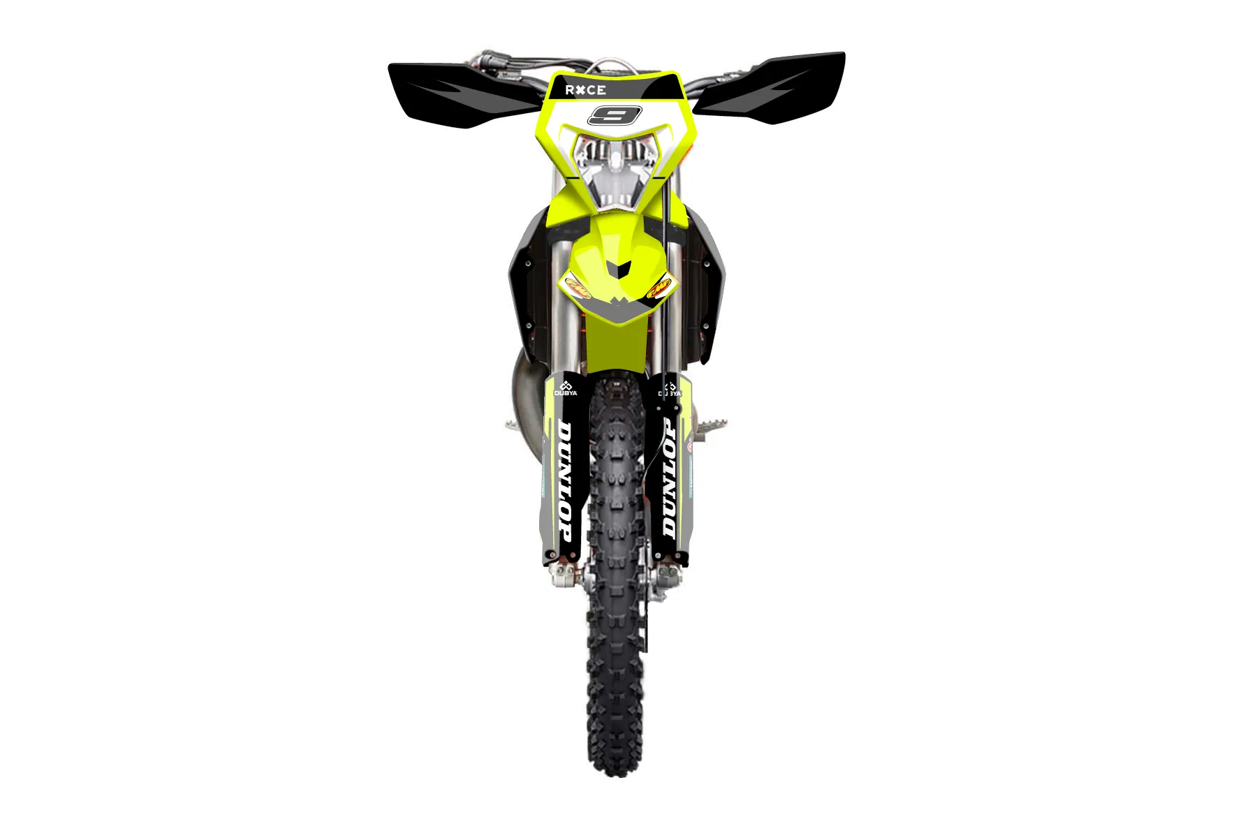 «Lucent Neon» — готовый комплект графики серии Flow для KTM Enduro Graphic Kit KTM EXC 300 2024. В комплекте: графика на бак и боковые облицовки, крылья (переднее и заднее), передний щиток, номерные таблички, защита вилки. Материал: ПВХ-винил 80 мкр с холодной ламинацией 300 мкр, общая толщина 380 мкр; покрытие глянцевое или матовое на выбор. Устойчив к UV-излучению, воде, бензину и мойке высокого давления. Клей акриловый на сольвентной основе — постоянный, для гибких пластиков. На простых поверхностях монтируется без нагрева; для сложных изгибов рекомендуем фен. Этот пресет можно заказать как есть или взять за основу в конструкторе: поменять цвета, добавить стартовый номер и свой бренд. Производство — 3–5 рабочих дней, доставка по России СДЭКом или Почтой, по СНГ — курьерскими службами.