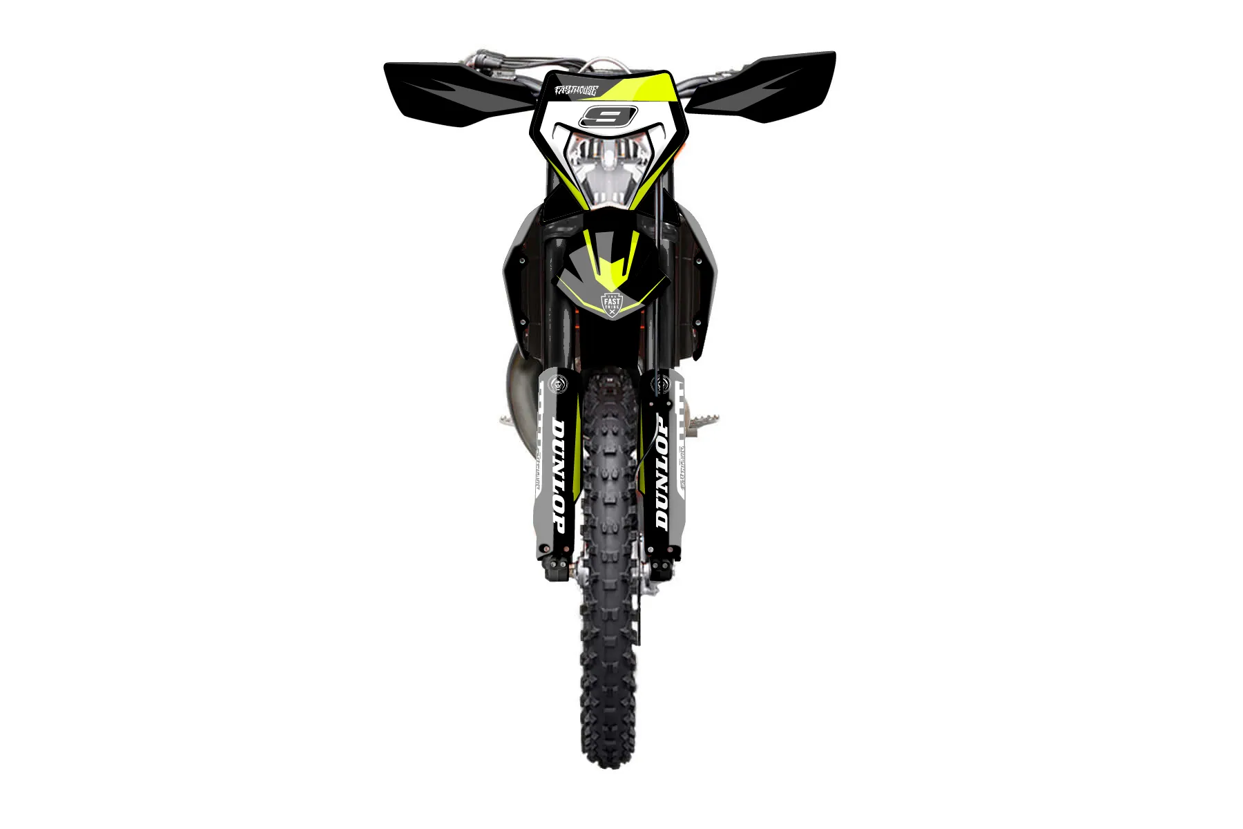 «Swirl Neon» — готовый комплект графики серии Fusion для KTM Enduro Graphic Kit KTM EXC 300 2024. В комплекте: графика на бак и боковые облицовки, крылья (переднее и заднее), передний щиток, номерные таблички, защита вилки. Материал: ПВХ-винил 80 мкр с холодной ламинацией 300 мкр, общая толщина 380 мкр; покрытие глянцевое или матовое на выбор. Устойчив к UV-излучению, воде, бензину и мойке высокого давления. Клей акриловый на сольвентной основе — постоянный, для гибких пластиков. На простых поверхностях монтируется без нагрева; для сложных изгибов рекомендуем фен. Этот пресет можно заказать как есть или взять за основу в конструкторе: поменять цвета, добавить стартовый номер и свой бренд. Производство — 3–5 рабочих дней, доставка по России СДЭКом или Почтой, по СНГ — курьерскими службами.