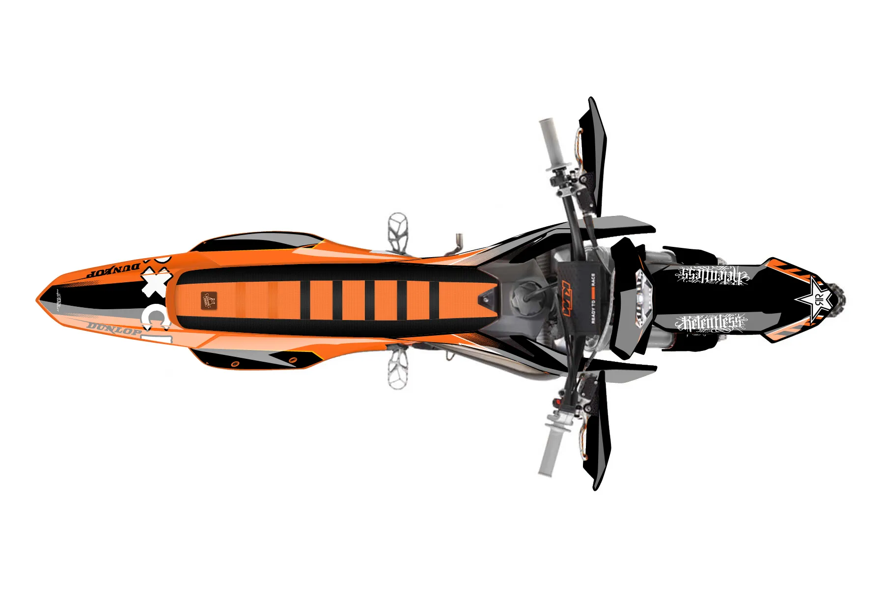 «CustomDesign7423585» — готовый комплект графики серии Maverick для KTM Enduro Graphic Kit KTM EXC 300 2024. В комплекте: графика на бак и боковые облицовки, крылья (переднее и заднее), передний щиток, номерные таблички, защита вилки. Материал: ПВХ-винил 80 мкр с холодной ламинацией 300 мкр, общая толщина 380 мкр; покрытие глянцевое или матовое на выбор. Устойчив к UV-излучению, воде, бензину и мойке высокого давления. Клей акриловый на сольвентной основе — постоянный, для гибких пластиков. На простых поверхностях монтируется без нагрева; для сложных изгибов рекомендуем фен. Этот пресет можно заказать как есть или взять за основу в конструкторе: поменять цвета, добавить стартовый номер и свой бренд. Производство — 3–5 рабочих дней, доставка по России СДЭКом или Почтой, по СНГ — курьерскими службами.