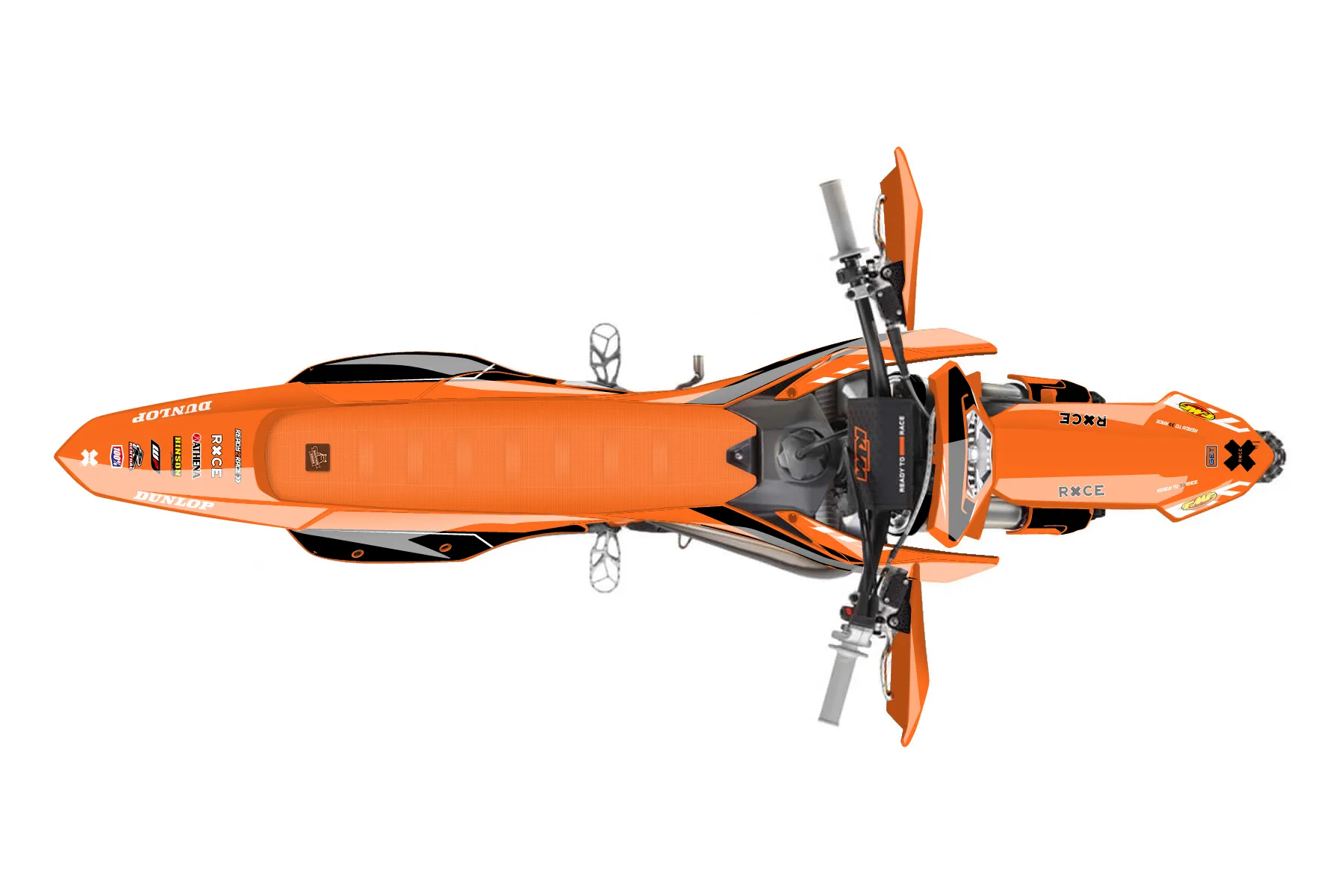 «Express» — готовый комплект графики серии Maverick для KTM Enduro Graphic Kit KTM EXC 300 2024. В комплекте: графика на бак и боковые облицовки, крылья (переднее и заднее), передний щиток, номерные таблички, защита вилки. Материал: ПВХ-винил 80 мкр с холодной ламинацией 300 мкр, общая толщина 380 мкр; покрытие глянцевое или матовое на выбор. Устойчив к UV-излучению, воде, бензину и мойке высокого давления. Клей акриловый на сольвентной основе — постоянный, для гибких пластиков. На простых поверхностях монтируется без нагрева; для сложных изгибов рекомендуем фен. Этот пресет можно заказать как есть или взять за основу в конструкторе: поменять цвета, добавить стартовый номер и свой бренд. Производство — 3–5 рабочих дней, доставка по России СДЭКом или Почтой, по СНГ — курьерскими службами.