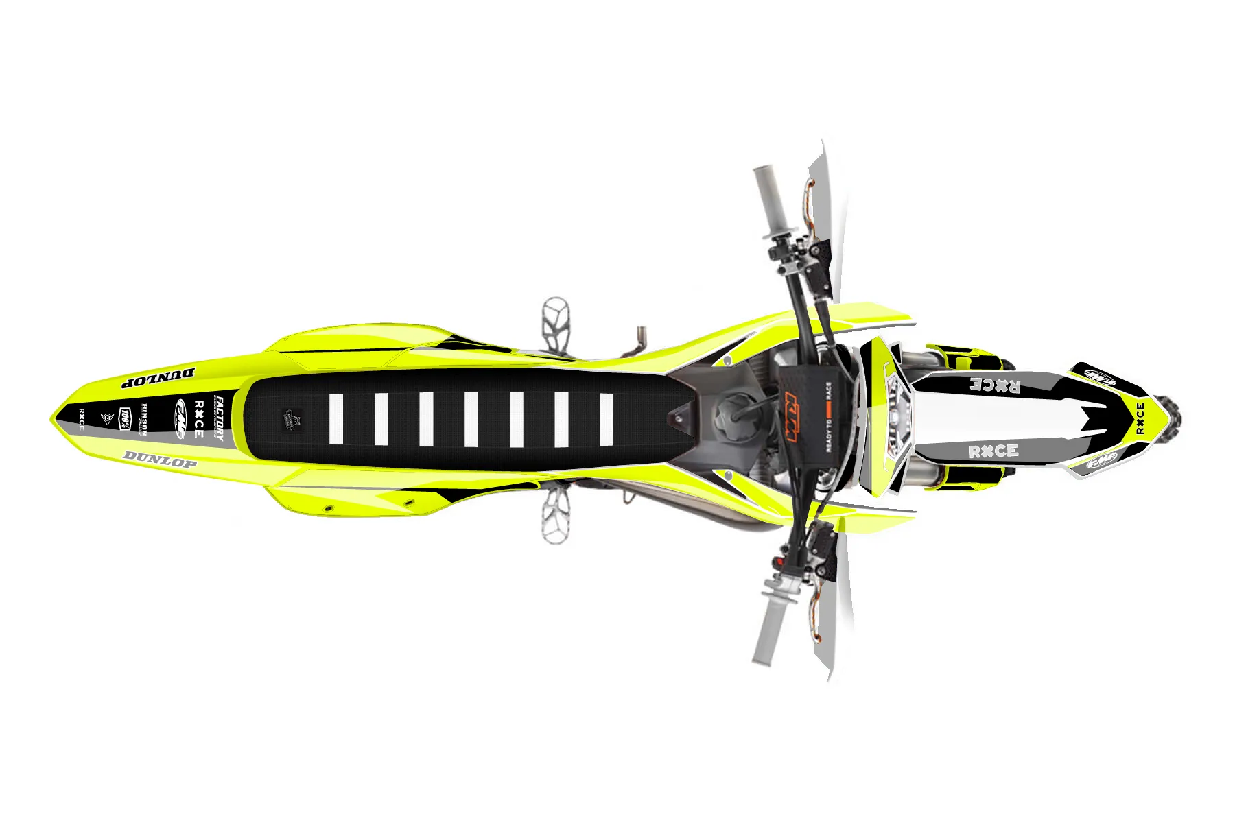 «Ryder Neon» — готовый комплект графики серии Maverick для KTM Enduro Graphic Kit KTM EXC 300 2024. В комплекте: графика на бак и боковые облицовки, крылья (переднее и заднее), передний щиток, номерные таблички, защита вилки. Материал: ПВХ-винил 80 мкр с холодной ламинацией 300 мкр, общая толщина 380 мкр; покрытие глянцевое или матовое на выбор. Устойчив к UV-излучению, воде, бензину и мойке высокого давления. Клей акриловый на сольвентной основе — постоянный, для гибких пластиков. На простых поверхностях монтируется без нагрева; для сложных изгибов рекомендуем фен. Этот пресет можно заказать как есть или взять за основу в конструкторе: поменять цвета, добавить стартовый номер и свой бренд. Производство — 3–5 рабочих дней, доставка по России СДЭКом или Почтой, по СНГ — курьерскими службами.