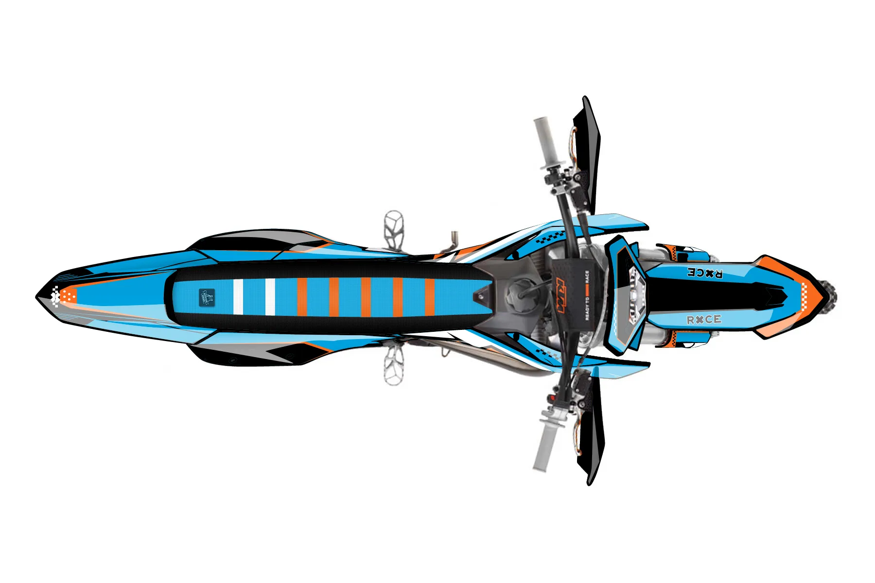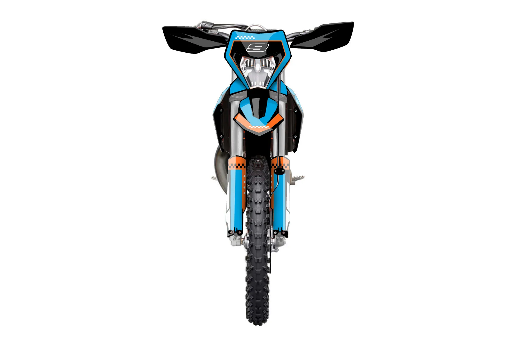 «2026 300 xc-w Blue Graphics» — готовый комплект графики серии Staple для KTM Enduro Graphic Kit KTM EXC 300 2024. В комплекте: графика на бак и боковые облицовки, крылья (переднее и заднее), передний щиток, номерные таблички, защита вилки. Материал: ПВХ-винил 80 мкр с холодной ламинацией 300 мкр, общая толщина 380 мкр; покрытие глянцевое или матовое на выбор. Устойчив к UV-излучению, воде, бензину и мойке высокого давления. Клей акриловый на сольвентной основе — постоянный, для гибких пластиков. На простых поверхностях монтируется без нагрева; для сложных изгибов рекомендуем фен. Этот пресет можно заказать как есть или взять за основу в конструкторе: поменять цвета, добавить стартовый номер и свой бренд. Производство — 3–5 рабочих дней, доставка по России СДЭКом или Почтой, по СНГ — курьерскими службами.