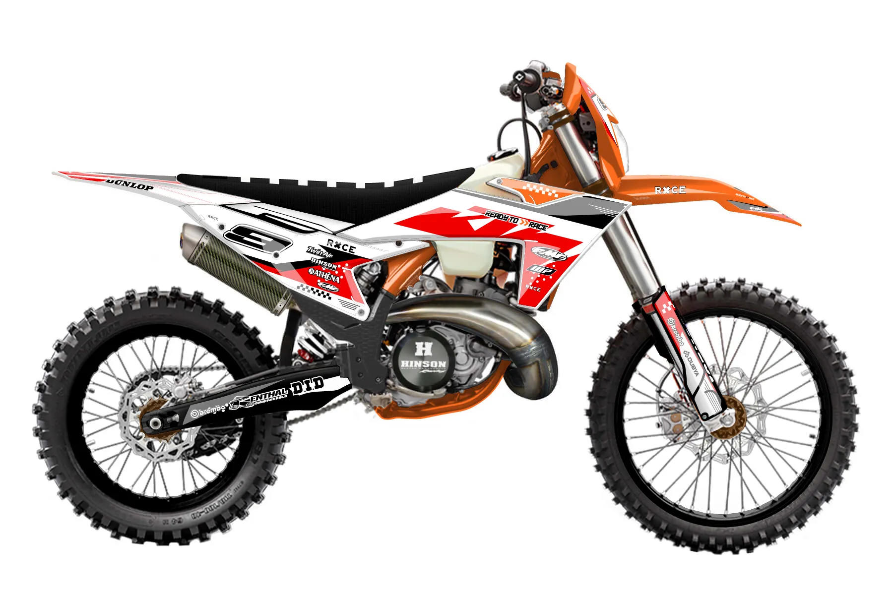 «Spirit» — готовый комплект графики серии Staple для KTM Enduro Graphic Kit KTM EXC 300 2024. В комплекте: графика на бак и боковые облицовки, крылья (переднее и заднее), передний щиток, номерные таблички, защита вилки. Материал: ПВХ-винил 80 мкр с холодной ламинацией 300 мкр, общая толщина 380 мкр; покрытие глянцевое или матовое на выбор. Устойчив к UV-излучению, воде, бензину и мойке высокого давления. Клей акриловый на сольвентной основе — постоянный, для гибких пластиков. На простых поверхностях монтируется без нагрева; для сложных изгибов рекомендуем фен. Этот пресет можно заказать как есть или взять за основу в конструкторе: поменять цвета, добавить стартовый номер и свой бренд. Производство — 3–5 рабочих дней, доставка по России СДЭКом или Почтой, по СНГ — курьерскими службами.