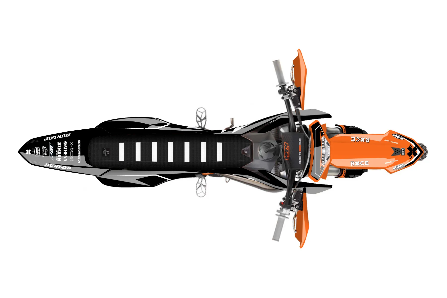 «Thrill» — готовый комплект графики серии Staple для KTM Enduro Graphic Kit KTM EXC 300 2024. В комплекте: графика на бак и боковые облицовки, крылья (переднее и заднее), передний щиток, номерные таблички, защита вилки. Материал: ПВХ-винил 80 мкр с холодной ламинацией 300 мкр, общая толщина 380 мкр; покрытие глянцевое или матовое на выбор. Устойчив к UV-излучению, воде, бензину и мойке высокого давления. Клей акриловый на сольвентной основе — постоянный, для гибких пластиков. На простых поверхностях монтируется без нагрева; для сложных изгибов рекомендуем фен. Этот пресет можно заказать как есть или взять за основу в конструкторе: поменять цвета, добавить стартовый номер и свой бренд. Производство — 3–5 рабочих дней, доставка по России СДЭКом или Почтой, по СНГ — курьерскими службами.