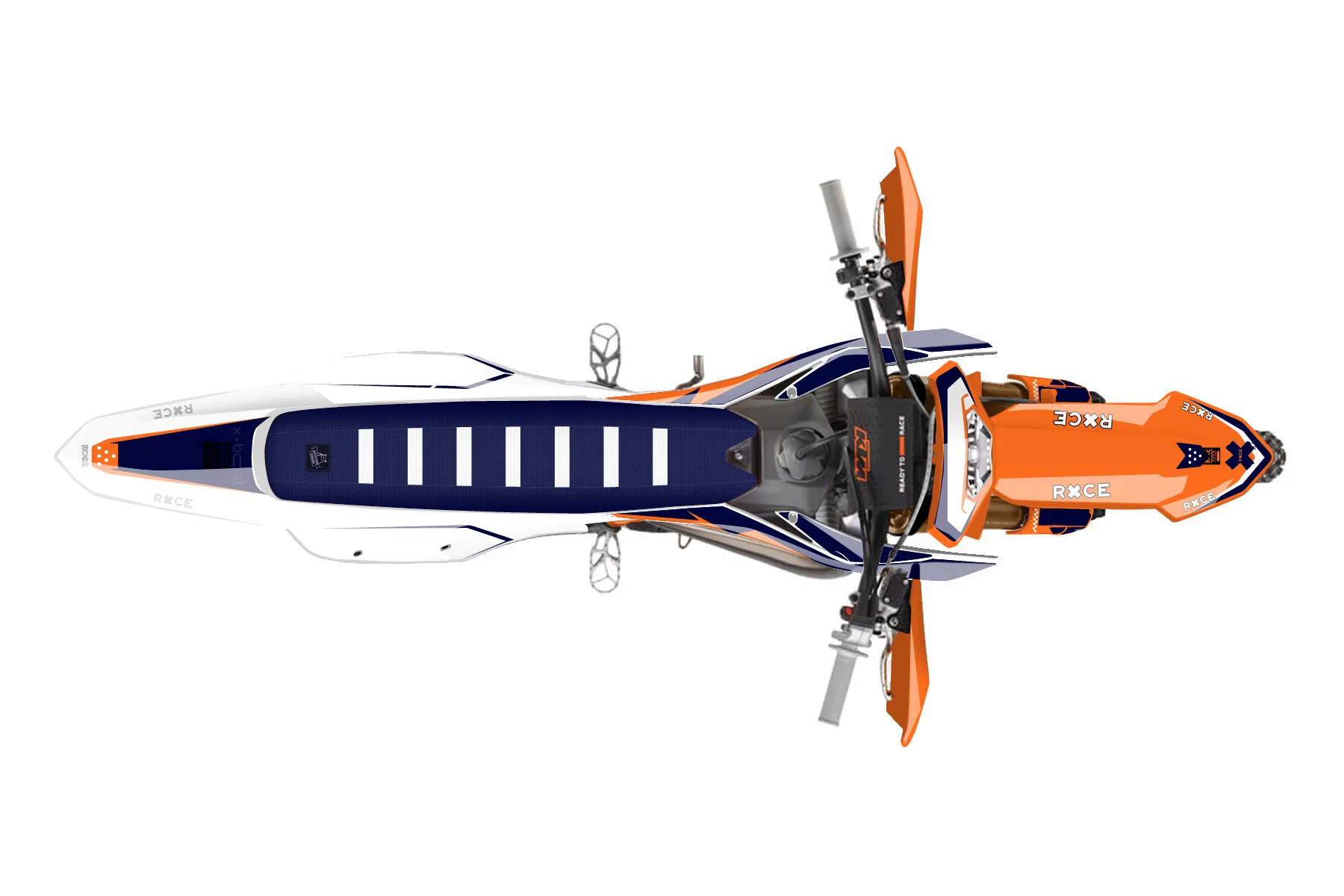 «Wrapper» — готовый комплект графики серии Staple для KTM Enduro Graphic Kit KTM EXC 300 2024. В комплекте: графика на бак и боковые облицовки, крылья (переднее и заднее), передний щиток, номерные таблички, защита вилки. Материал: ПВХ-винил 80 мкр с холодной ламинацией 300 мкр, общая толщина 380 мкр; покрытие глянцевое или матовое на выбор. Устойчив к UV-излучению, воде, бензину и мойке высокого давления. Клей акриловый на сольвентной основе — постоянный, для гибких пластиков. На простых поверхностях монтируется без нагрева; для сложных изгибов рекомендуем фен. Этот пресет можно заказать как есть или взять за основу в конструкторе: поменять цвета, добавить стартовый номер и свой бренд. Производство — 3–5 рабочих дней, доставка по России СДЭКом или Почтой, по СНГ — курьерскими службами.