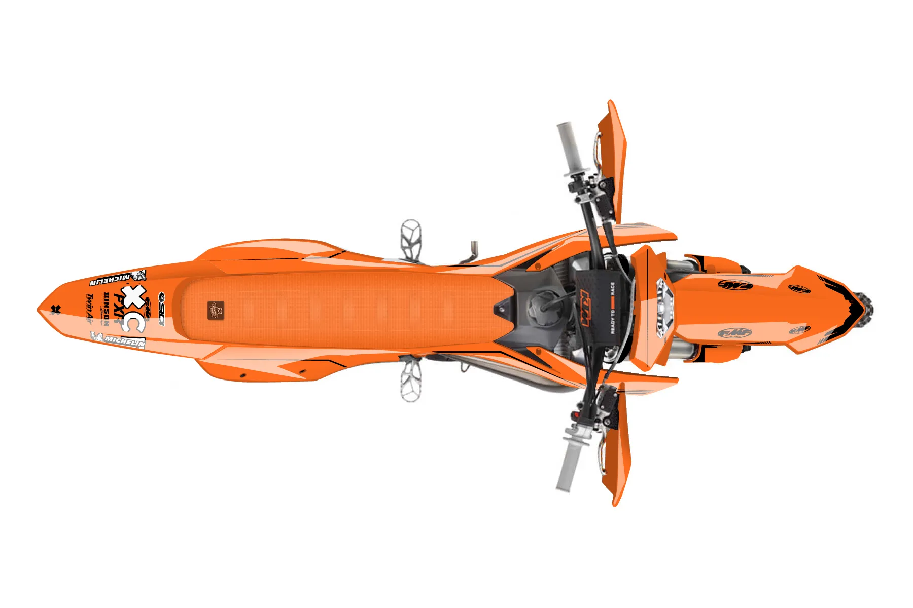 «Ktm 4» — готовый комплект графики серии Untucked для KTM Enduro Graphic Kit KTM EXC 300 2024. В комплекте: графика на бак и боковые облицовки, крылья (переднее и заднее), передний щиток, номерные таблички, защита вилки. Материал: ПВХ-винил 80 мкр с холодной ламинацией 300 мкр, общая толщина 380 мкр; покрытие глянцевое или матовое на выбор. Устойчив к UV-излучению, воде, бензину и мойке высокого давления. Клей акриловый на сольвентной основе — постоянный, для гибких пластиков. На простых поверхностях монтируется без нагрева; для сложных изгибов рекомендуем фен. Этот пресет можно заказать как есть или взять за основу в конструкторе: поменять цвета, добавить стартовый номер и свой бренд. Производство — 3–5 рабочих дней, доставка по России СДЭКом или Почтой, по СНГ — курьерскими службами.