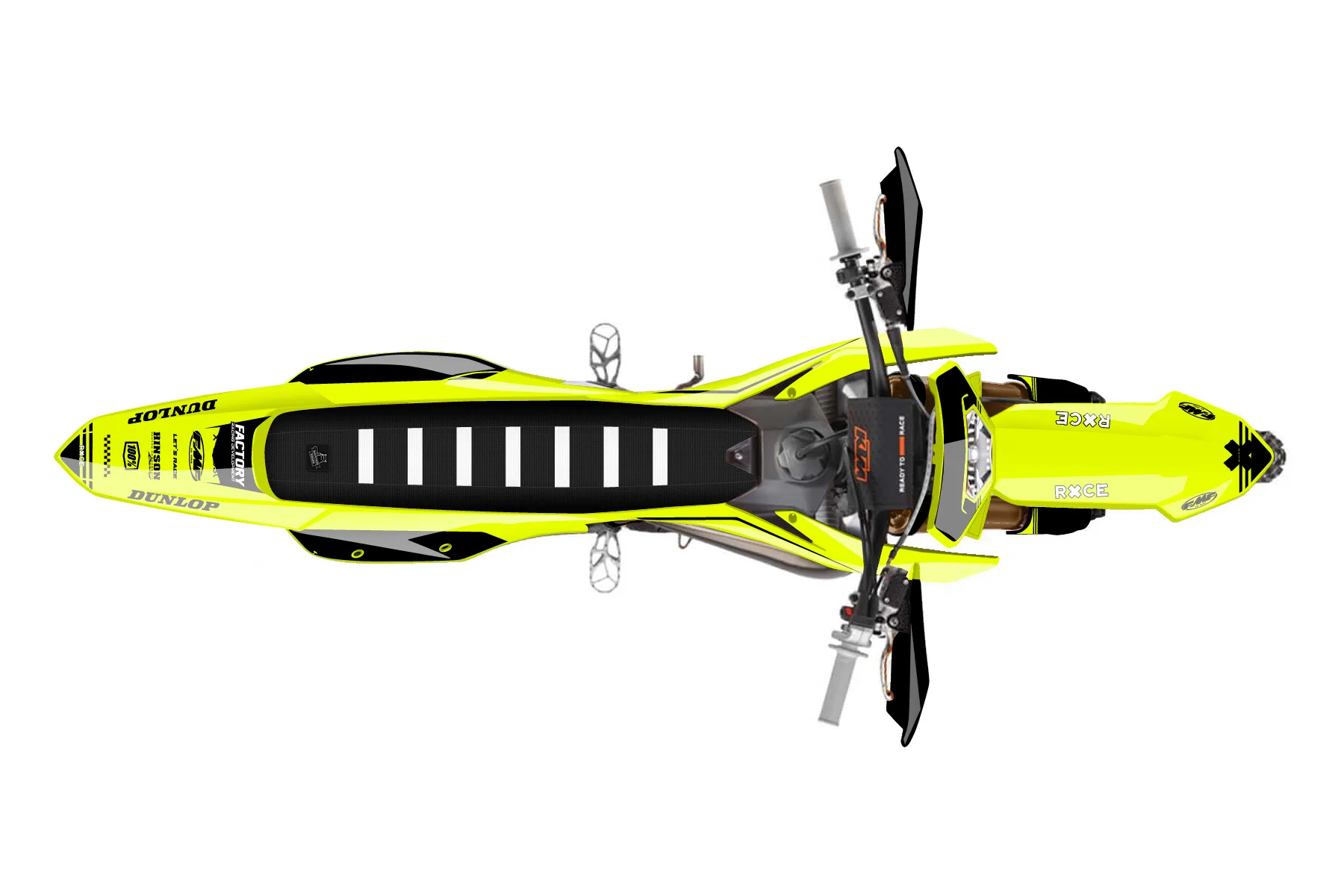 «Loose Neon» — готовый комплект графики серии Untucked для KTM Enduro Graphic Kit KTM EXC 300 2024. В комплекте: графика на бак и боковые облицовки, крылья (переднее и заднее), передний щиток, номерные таблички, защита вилки. Материал: ПВХ-винил 80 мкр с холодной ламинацией 300 мкр, общая толщина 380 мкр; покрытие глянцевое или матовое на выбор. Устойчив к UV-излучению, воде, бензину и мойке высокого давления. Клей акриловый на сольвентной основе — постоянный, для гибких пластиков. На простых поверхностях монтируется без нагрева; для сложных изгибов рекомендуем фен. Этот пресет можно заказать как есть или взять за основу в конструкторе: поменять цвета, добавить стартовый номер и свой бренд. Производство — 3–5 рабочих дней, доставка по России СДЭКом или Почтой, по СНГ — курьерскими службами.