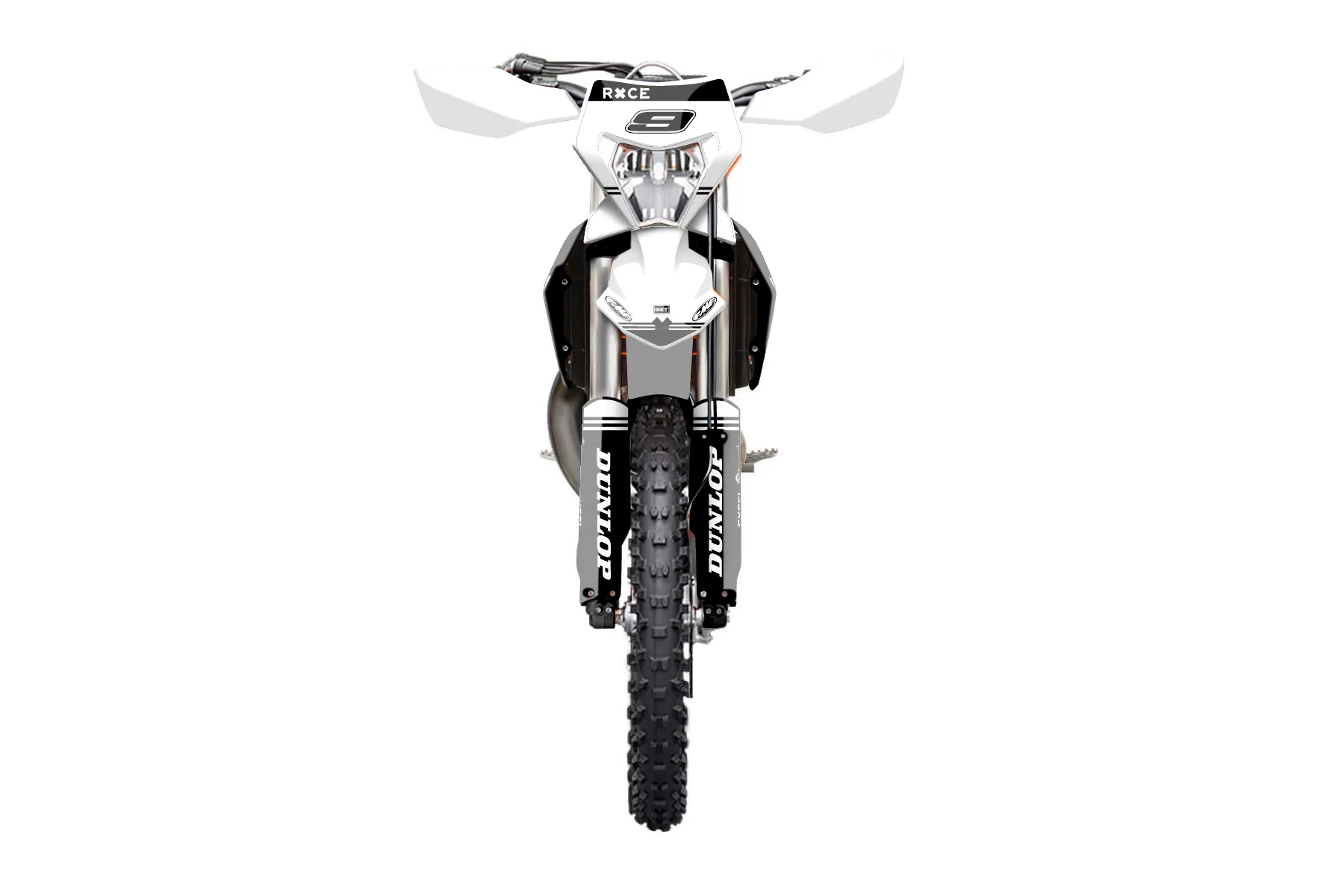 «Specific» — готовый комплект графики серии Untucked для KTM Enduro Graphic Kit KTM EXC 300 2024. В комплекте: графика на бак и боковые облицовки, крылья (переднее и заднее), передний щиток, номерные таблички, защита вилки. Материал: ПВХ-винил 80 мкр с холодной ламинацией 300 мкр, общая толщина 380 мкр; покрытие глянцевое или матовое на выбор. Устойчив к UV-излучению, воде, бензину и мойке высокого давления. Клей акриловый на сольвентной основе — постоянный, для гибких пластиков. На простых поверхностях монтируется без нагрева; для сложных изгибов рекомендуем фен. Этот пресет можно заказать как есть или взять за основу в конструкторе: поменять цвета, добавить стартовый номер и свой бренд. Производство — 3–5 рабочих дней, доставка по России СДЭКом или Почтой, по СНГ — курьерскими службами.