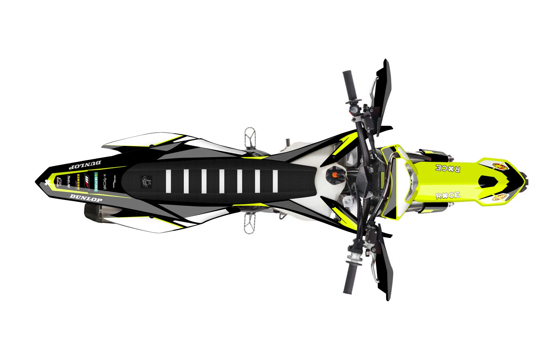 «Lucent Neon» — готовый комплект графики серии Flow для KTM Enduro Graphic Kit KTM EXC-F 250 2014. В комплекте: графика на бак и боковые облицовки, крылья (переднее и заднее), передний щиток, номерные таблички, защита вилки. Материал: ПВХ-винил 80 мкр с холодной ламинацией 300 мкр, общая толщина 380 мкр; покрытие глянцевое или матовое на выбор. Устойчив к UV-излучению, воде, бензину и мойке высокого давления. Клей акриловый на сольвентной основе — постоянный, для гибких пластиков. На простых поверхностях монтируется без нагрева; для сложных изгибов рекомендуем фен. Этот пресет можно заказать как есть или взять за основу в конструкторе: поменять цвета, добавить стартовый номер и свой бренд. Производство — 3–5 рабочих дней, доставка по России СДЭКом или Почтой, по СНГ — курьерскими службами.