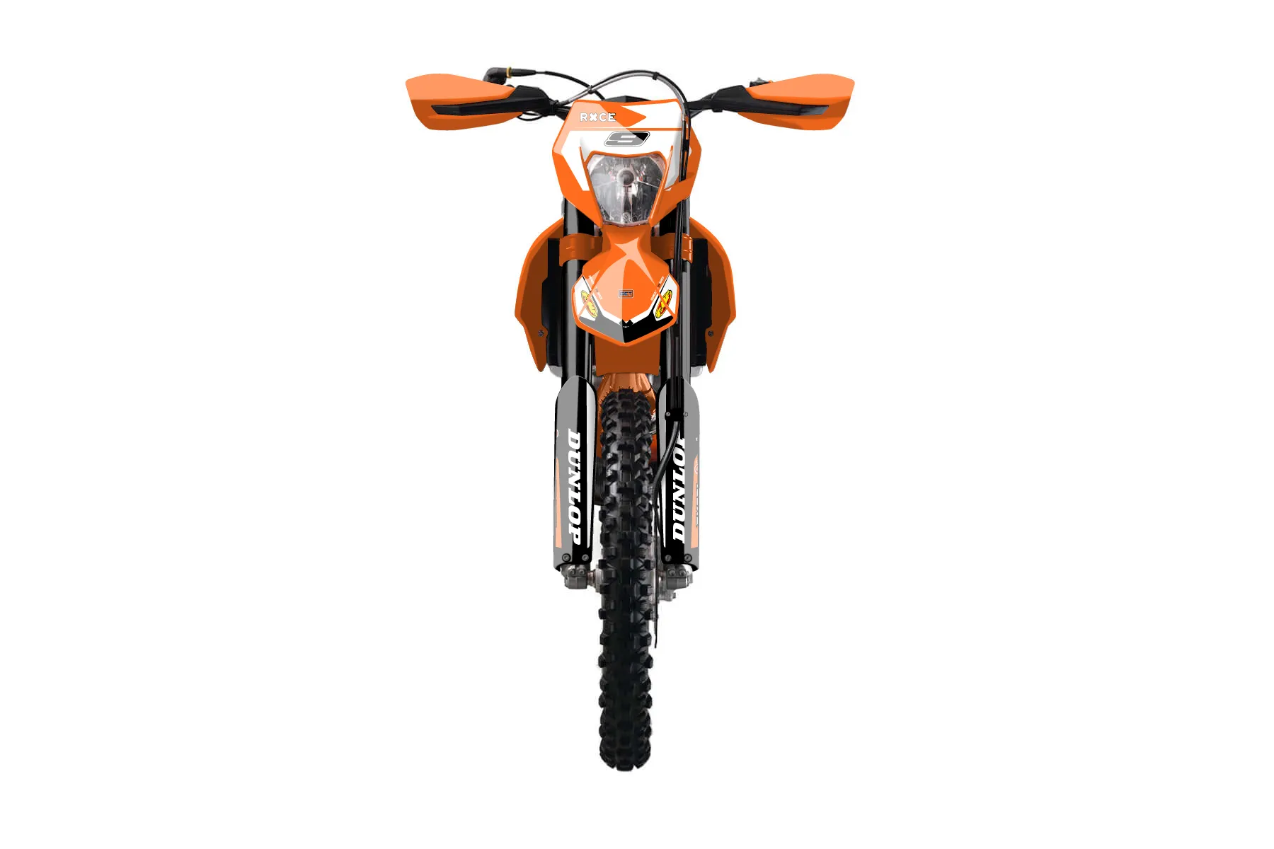 «Predicted» — готовый комплект графики серии Flow для KTM Enduro Graphic Kit KTM EXC-F 250 2014. В комплекте: графика на бак и боковые облицовки, крылья (переднее и заднее), передний щиток, номерные таблички, защита вилки. Материал: ПВХ-винил 80 мкр с холодной ламинацией 300 мкр, общая толщина 380 мкр; покрытие глянцевое или матовое на выбор. Устойчив к UV-излучению, воде, бензину и мойке высокого давления. Клей акриловый на сольвентной основе — постоянный, для гибких пластиков. На простых поверхностях монтируется без нагрева; для сложных изгибов рекомендуем фен. Этот пресет можно заказать как есть или взять за основу в конструкторе: поменять цвета, добавить стартовый номер и свой бренд. Производство — 3–5 рабочих дней, доставка по России СДЭКом или Почтой, по СНГ — курьерскими службами.