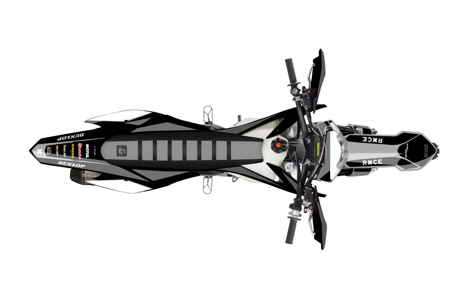 «Transworld» — готовый комплект графики серии Flow для KTM Enduro Graphic Kit KTM EXC-F 250 2014. В комплекте: графика на бак и боковые облицовки, крылья (переднее и заднее), передний щиток, номерные таблички, защита вилки. Материал: ПВХ-винил 80 мкр с холодной ламинацией 300 мкр, общая толщина 380 мкр; покрытие глянцевое или матовое на выбор. Устойчив к UV-излучению, воде, бензину и мойке высокого давления. Клей акриловый на сольвентной основе — постоянный, для гибких пластиков. На простых поверхностях монтируется без нагрева; для сложных изгибов рекомендуем фен. Этот пресет можно заказать как есть или взять за основу в конструкторе: поменять цвета, добавить стартовый номер и свой бренд. Производство — 3–5 рабочих дней, доставка по России СДЭКом или Почтой, по СНГ — курьерскими службами.