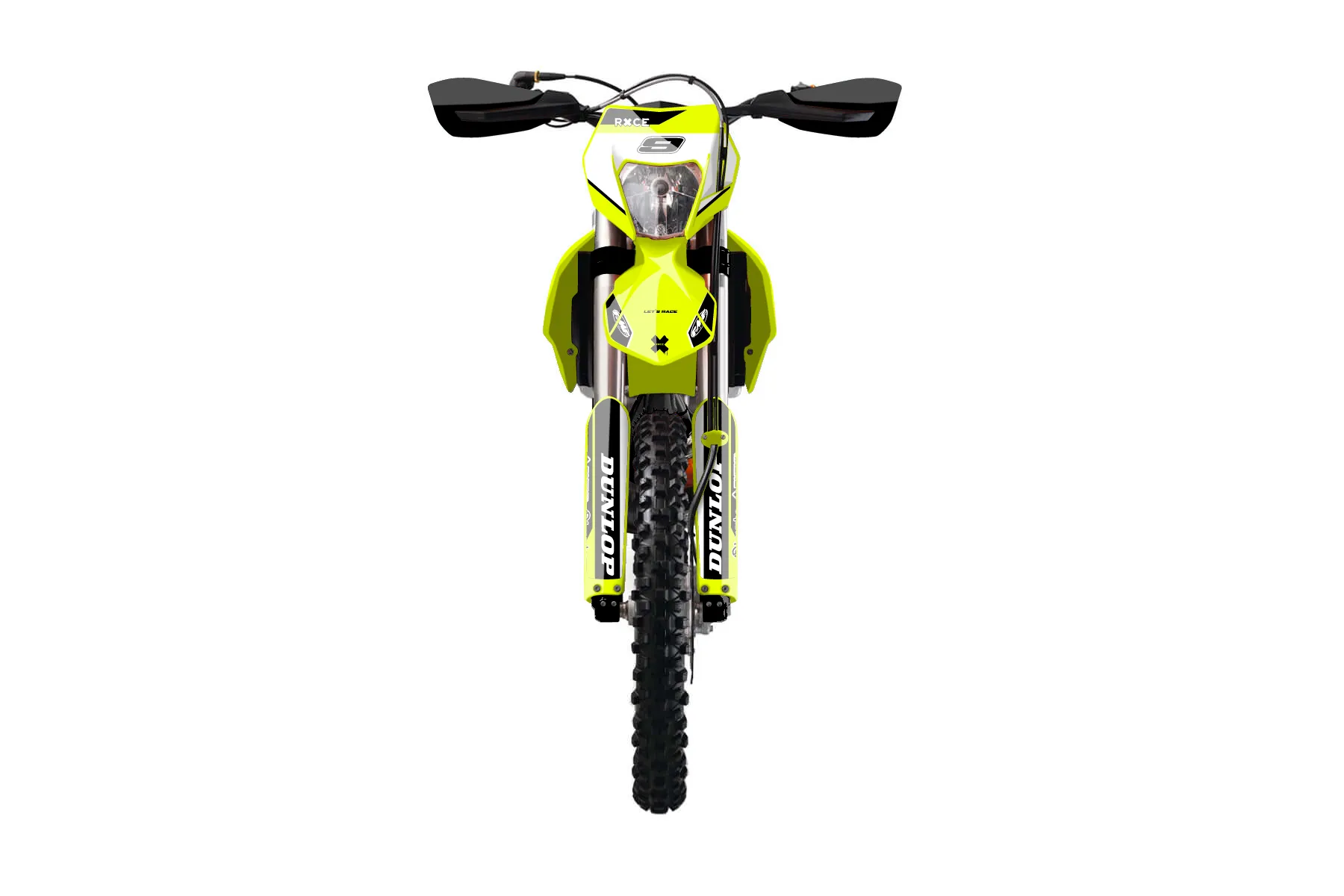 «Bright Neon» — готовый комплект графики серии Maverick для KTM Enduro Graphic Kit KTM EXC-F 250 2014. В комплекте: графика на бак и боковые облицовки, крылья (переднее и заднее), передний щиток, номерные таблички, защита вилки. Материал: ПВХ-винил 80 мкр с холодной ламинацией 300 мкр, общая толщина 380 мкр; покрытие глянцевое или матовое на выбор. Устойчив к UV-излучению, воде, бензину и мойке высокого давления. Клей акриловый на сольвентной основе — постоянный, для гибких пластиков. На простых поверхностях монтируется без нагрева; для сложных изгибов рекомендуем фен. Этот пресет можно заказать как есть или взять за основу в конструкторе: поменять цвета, добавить стартовый номер и свой бренд. Производство — 3–5 рабочих дней, доставка по России СДЭКом или Почтой, по СНГ — курьерскими службами.