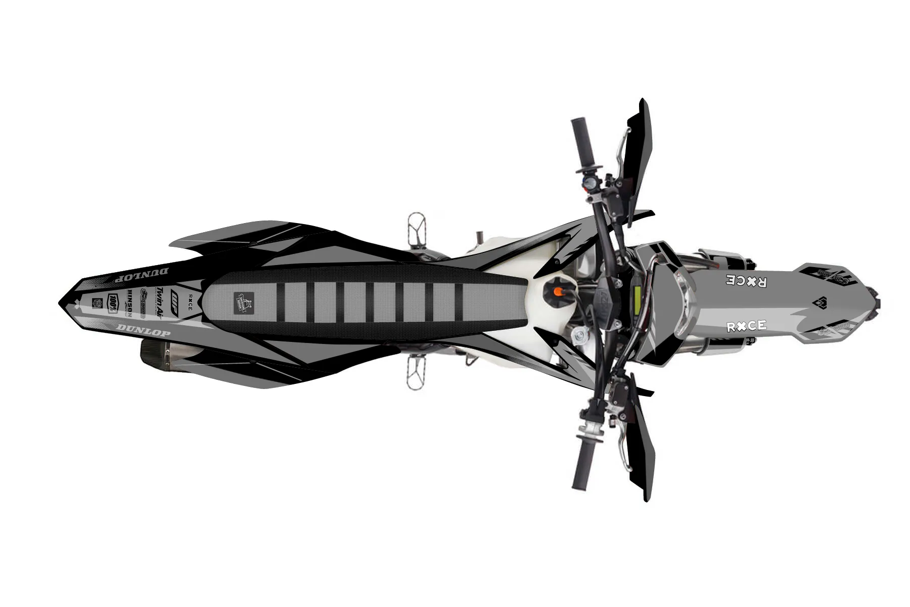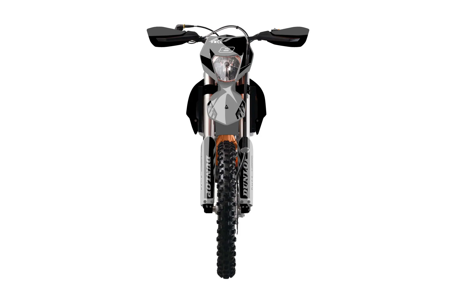 «Grip» — готовый комплект графики серии Maverick для KTM Enduro Graphic Kit KTM EXC-F 250 2014. В комплекте: графика на бак и боковые облицовки, крылья (переднее и заднее), передний щиток, номерные таблички, защита вилки. Материал: ПВХ-винил 80 мкр с холодной ламинацией 300 мкр, общая толщина 380 мкр; покрытие глянцевое или матовое на выбор. Устойчив к UV-излучению, воде, бензину и мойке высокого давления. Клей акриловый на сольвентной основе — постоянный, для гибких пластиков. На простых поверхностях монтируется без нагрева; для сложных изгибов рекомендуем фен. Этот пресет можно заказать как есть или взять за основу в конструкторе: поменять цвета, добавить стартовый номер и свой бренд. Производство — 3–5 рабочих дней, доставка по России СДЭКом или Почтой, по СНГ — курьерскими службами.