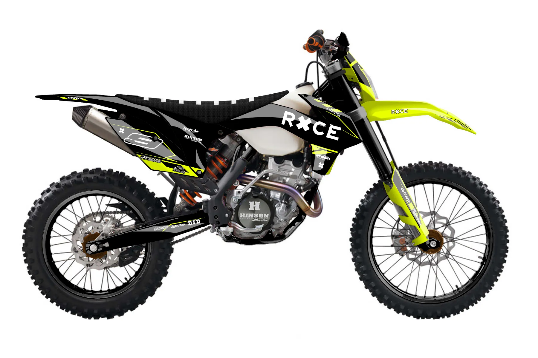 «Kitted Neon» — готовый комплект графики серии Maverick для KTM Enduro Graphic Kit KTM EXC-F 250 2014. В комплекте: графика на бак и боковые облицовки, крылья (переднее и заднее), передний щиток, номерные таблички, защита вилки. Материал: ПВХ-винил 80 мкр с холодной ламинацией 300 мкр, общая толщина 380 мкр; покрытие глянцевое или матовое на выбор. Устойчив к UV-излучению, воде, бензину и мойке высокого давления. Клей акриловый на сольвентной основе — постоянный, для гибких пластиков. На простых поверхностях монтируется без нагрева; для сложных изгибов рекомендуем фен. Этот пресет можно заказать как есть или взять за основу в конструкторе: поменять цвета, добавить стартовый номер и свой бренд. Производство — 3–5 рабочих дней, доставка по России СДЭКом или Почтой, по СНГ — курьерскими службами.