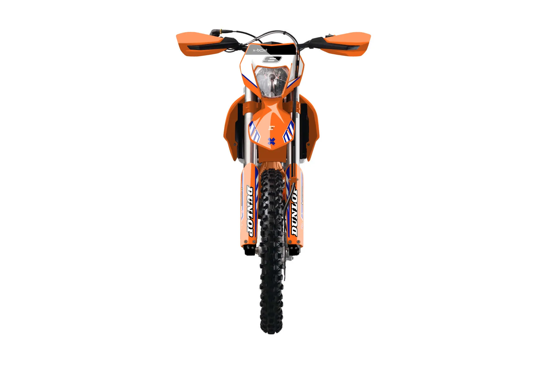 «Showtime» — готовый комплект графики серии Maverick для KTM Enduro Graphic Kit KTM EXC-F 250 2014. В комплекте: графика на бак и боковые облицовки, крылья (переднее и заднее), передний щиток, номерные таблички, защита вилки. Материал: ПВХ-винил 80 мкр с холодной ламинацией 300 мкр, общая толщина 380 мкр; покрытие глянцевое или матовое на выбор. Устойчив к UV-излучению, воде, бензину и мойке высокого давления. Клей акриловый на сольвентной основе — постоянный, для гибких пластиков. На простых поверхностях монтируется без нагрева; для сложных изгибов рекомендуем фен. Этот пресет можно заказать как есть или взять за основу в конструкторе: поменять цвета, добавить стартовый номер и свой бренд. Производство — 3–5 рабочих дней, доставка по России СДЭКом или Почтой, по СНГ — курьерскими службами.