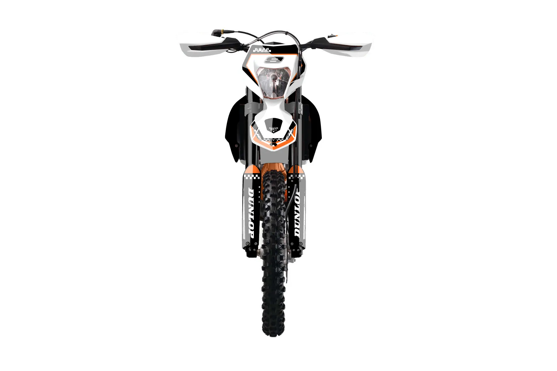 «Chef» — готовый комплект графики серии Staple для KTM Enduro Graphic Kit KTM EXC-F 250 2014. В комплекте: графика на бак и боковые облицовки, крылья (переднее и заднее), передний щиток, номерные таблички, защита вилки. Материал: ПВХ-винил 80 мкр с холодной ламинацией 300 мкр, общая толщина 380 мкр; покрытие глянцевое или матовое на выбор. Устойчив к UV-излучению, воде, бензину и мойке высокого давления. Клей акриловый на сольвентной основе — постоянный, для гибких пластиков. На простых поверхностях монтируется без нагрева; для сложных изгибов рекомендуем фен. Этот пресет можно заказать как есть или взять за основу в конструкторе: поменять цвета, добавить стартовый номер и свой бренд. Производство — 3–5 рабочих дней, доставка по России СДЭКом или Почтой, по СНГ — курьерскими службами.