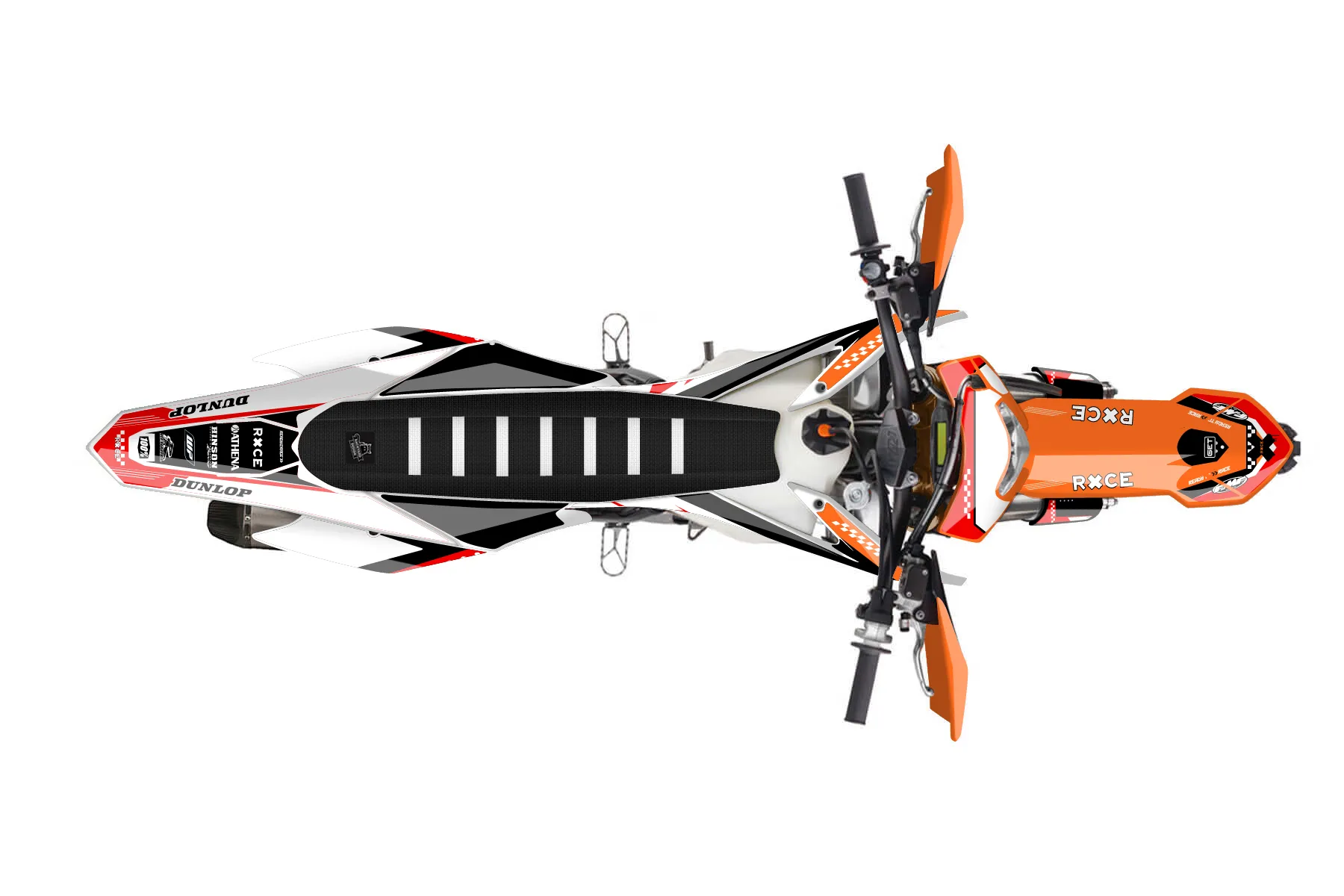 «Spirit» — готовый комплект графики серии Staple для KTM Enduro Graphic Kit KTM EXC-F 250 2014. В комплекте: графика на бак и боковые облицовки, крылья (переднее и заднее), передний щиток, номерные таблички, защита вилки. Материал: ПВХ-винил 80 мкр с холодной ламинацией 300 мкр, общая толщина 380 мкр; покрытие глянцевое или матовое на выбор. Устойчив к UV-излучению, воде, бензину и мойке высокого давления. Клей акриловый на сольвентной основе — постоянный, для гибких пластиков. На простых поверхностях монтируется без нагрева; для сложных изгибов рекомендуем фен. Этот пресет можно заказать как есть или взять за основу в конструкторе: поменять цвета, добавить стартовый номер и свой бренд. Производство — 3–5 рабочих дней, доставка по России СДЭКом или Почтой, по СНГ — курьерскими службами.