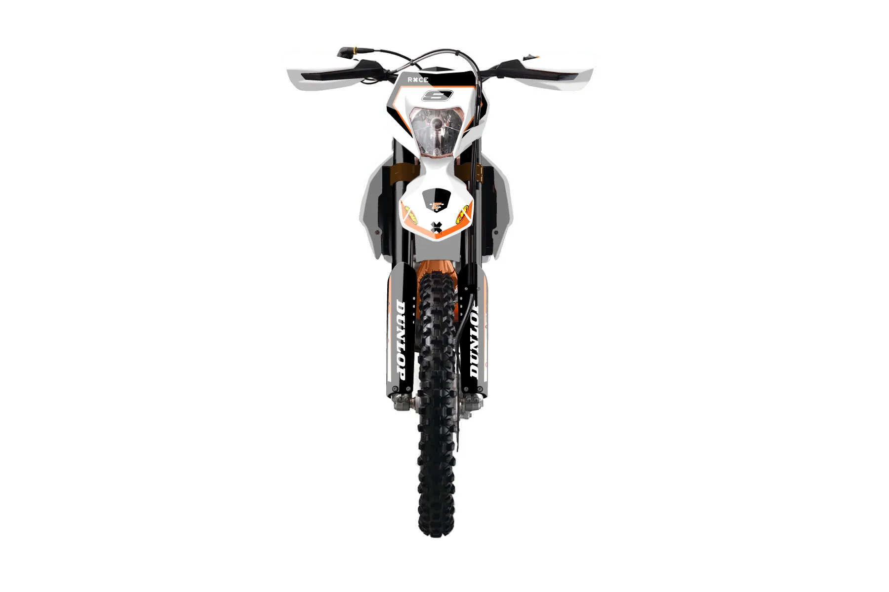 «Tilled» — готовый комплект графики серии Staple для KTM Enduro Graphic Kit KTM EXC-F 250 2014. В комплекте: графика на бак и боковые облицовки, крылья (переднее и заднее), передний щиток, номерные таблички, защита вилки. Материал: ПВХ-винил 80 мкр с холодной ламинацией 300 мкр, общая толщина 380 мкр; покрытие глянцевое или матовое на выбор. Устойчив к UV-излучению, воде, бензину и мойке высокого давления. Клей акриловый на сольвентной основе — постоянный, для гибких пластиков. На простых поверхностях монтируется без нагрева; для сложных изгибов рекомендуем фен. Этот пресет можно заказать как есть или взять за основу в конструкторе: поменять цвета, добавить стартовый номер и свой бренд. Производство — 3–5 рабочих дней, доставка по России СДЭКом или Почтой, по СНГ — курьерскими службами.