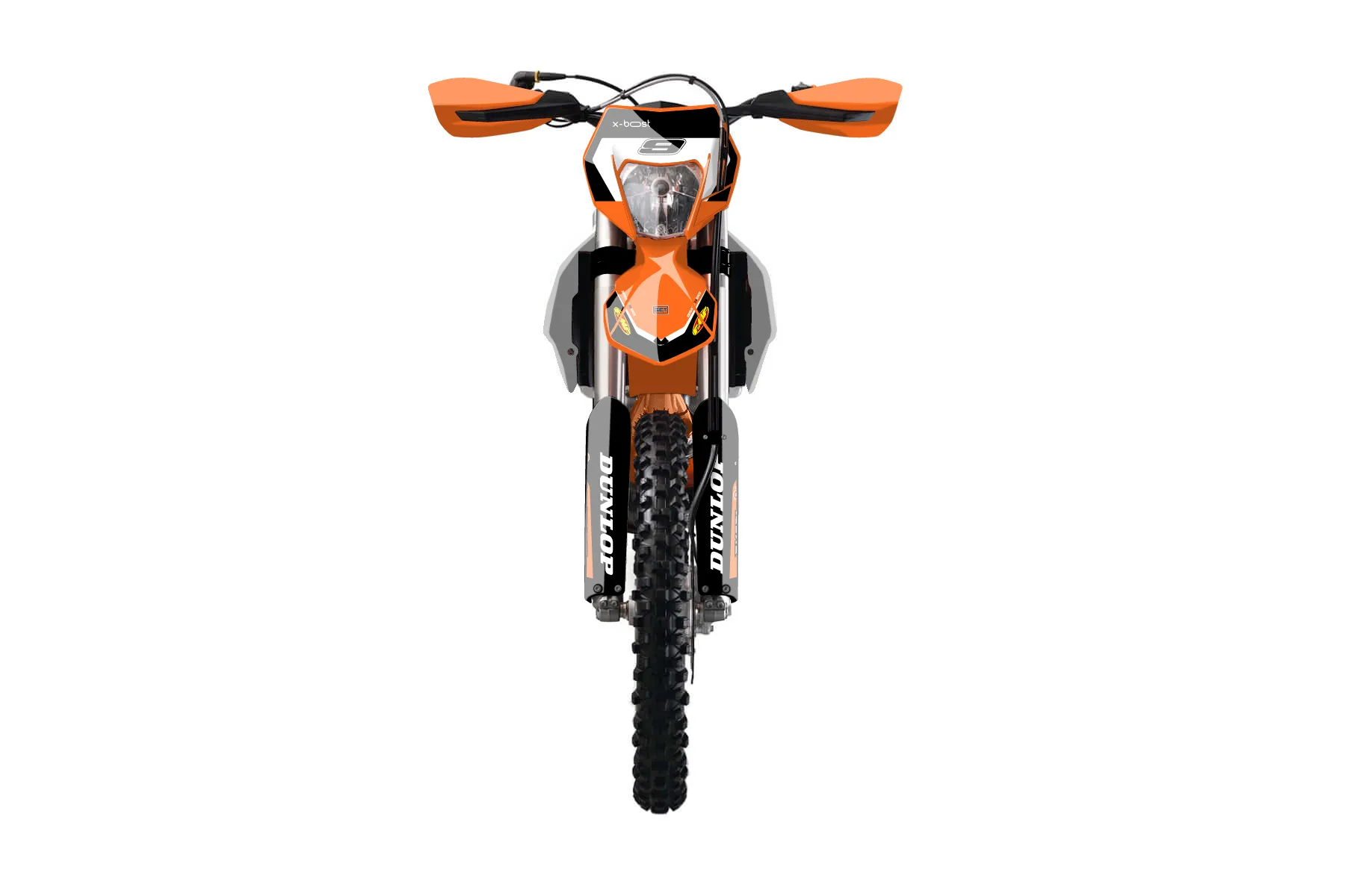 «Answer» — готовый комплект графики серии Flow для KTM Enduro Graphic Kit KTM EXC-F 250 2016. В комплекте: графика на бак и боковые облицовки, крылья (переднее и заднее), передний щиток, номерные таблички, защита вилки. Материал: ПВХ-винил 80 мкр с холодной ламинацией 300 мкр, общая толщина 380 мкр; покрытие глянцевое или матовое на выбор. Устойчив к UV-излучению, воде, бензину и мойке высокого давления. Клей акриловый на сольвентной основе — постоянный, для гибких пластиков. На простых поверхностях монтируется без нагрева; для сложных изгибов рекомендуем фен. Этот пресет можно заказать как есть или взять за основу в конструкторе: поменять цвета, добавить стартовый номер и свой бренд. Производство — 3–5 рабочих дней, доставка по России СДЭКом или Почтой, по СНГ — курьерскими службами.