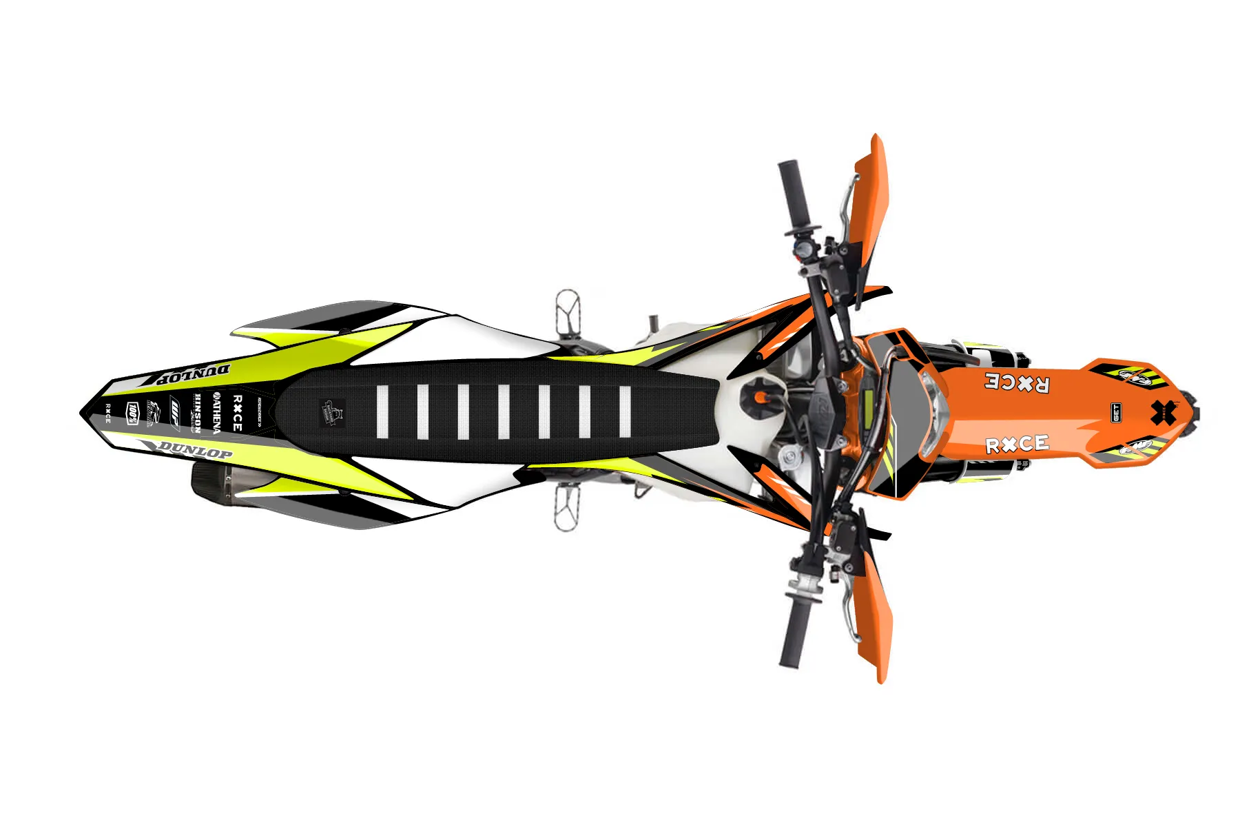 «Chase Neon» — готовый комплект графики серии Maverick для KTM Enduro Graphic Kit KTM EXC-F 250 2016. В комплекте: графика на бак и боковые облицовки, крылья (переднее и заднее), передний щиток, номерные таблички, защита вилки. Материал: ПВХ-винил 80 мкр с холодной ламинацией 300 мкр, общая толщина 380 мкр; покрытие глянцевое или матовое на выбор. Устойчив к UV-излучению, воде, бензину и мойке высокого давления. Клей акриловый на сольвентной основе — постоянный, для гибких пластиков. На простых поверхностях монтируется без нагрева; для сложных изгибов рекомендуем фен. Этот пресет можно заказать как есть или взять за основу в конструкторе: поменять цвета, добавить стартовый номер и свой бренд. Производство — 3–5 рабочих дней, доставка по России СДЭКом или Почтой, по СНГ — курьерскими службами.