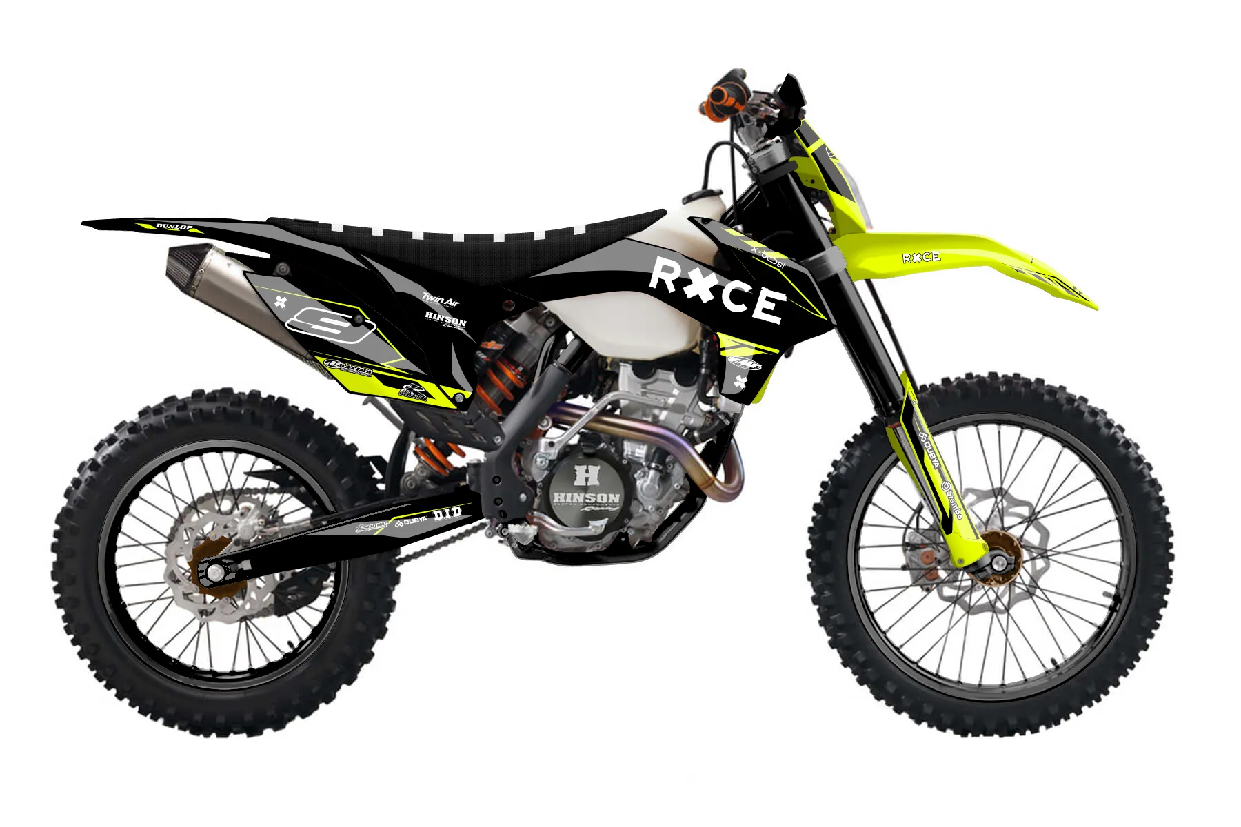 «Kitted Neon» — готовый комплект графики серии Maverick для KTM Enduro Graphic Kit KTM EXC-F 250 2016. В комплекте: графика на бак и боковые облицовки, крылья (переднее и заднее), передний щиток, номерные таблички, защита вилки. Материал: ПВХ-винил 80 мкр с холодной ламинацией 300 мкр, общая толщина 380 мкр; покрытие глянцевое или матовое на выбор. Устойчив к UV-излучению, воде, бензину и мойке высокого давления. Клей акриловый на сольвентной основе — постоянный, для гибких пластиков. На простых поверхностях монтируется без нагрева; для сложных изгибов рекомендуем фен. Этот пресет можно заказать как есть или взять за основу в конструкторе: поменять цвета, добавить стартовый номер и свой бренд. Производство — 3–5 рабочих дней, доставка по России СДЭКом или Почтой, по СНГ — курьерскими службами.
