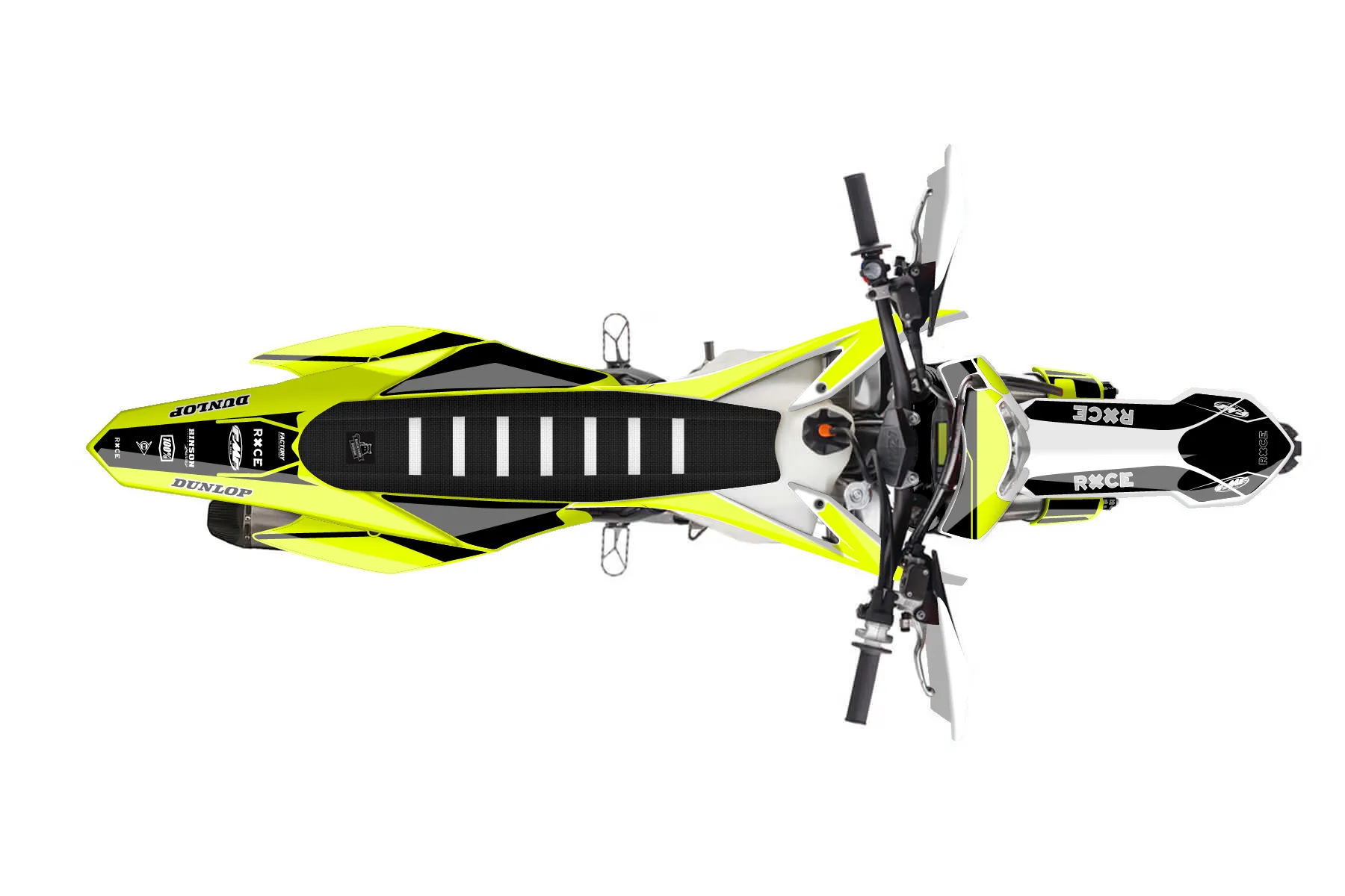«Ryder Neon» — готовый комплект графики серии Maverick для KTM Enduro Graphic Kit KTM EXC-F 250 2016. В комплекте: графика на бак и боковые облицовки, крылья (переднее и заднее), передний щиток, номерные таблички, защита вилки. Материал: ПВХ-винил 80 мкр с холодной ламинацией 300 мкр, общая толщина 380 мкр; покрытие глянцевое или матовое на выбор. Устойчив к UV-излучению, воде, бензину и мойке высокого давления. Клей акриловый на сольвентной основе — постоянный, для гибких пластиков. На простых поверхностях монтируется без нагрева; для сложных изгибов рекомендуем фен. Этот пресет можно заказать как есть или взять за основу в конструкторе: поменять цвета, добавить стартовый номер и свой бренд. Производство — 3–5 рабочих дней, доставка по России СДЭКом или Почтой, по СНГ — курьерскими службами.