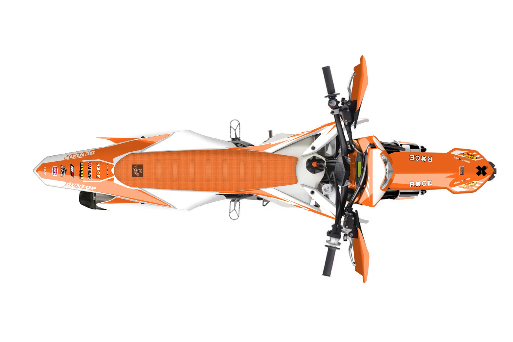 «Swapp» — готовый комплект графики серии Maverick для KTM Enduro Graphic Kit KTM EXC-F 250 2016. В комплекте: графика на бак и боковые облицовки, крылья (переднее и заднее), передний щиток, номерные таблички, защита вилки. Материал: ПВХ-винил 80 мкр с холодной ламинацией 300 мкр, общая толщина 380 мкр; покрытие глянцевое или матовое на выбор. Устойчив к UV-излучению, воде, бензину и мойке высокого давления. Клей акриловый на сольвентной основе — постоянный, для гибких пластиков. На простых поверхностях монтируется без нагрева; для сложных изгибов рекомендуем фен. Этот пресет можно заказать как есть или взять за основу в конструкторе: поменять цвета, добавить стартовый номер и свой бренд. Производство — 3–5 рабочих дней, доставка по России СДЭКом или Почтой, по СНГ — курьерскими службами.
