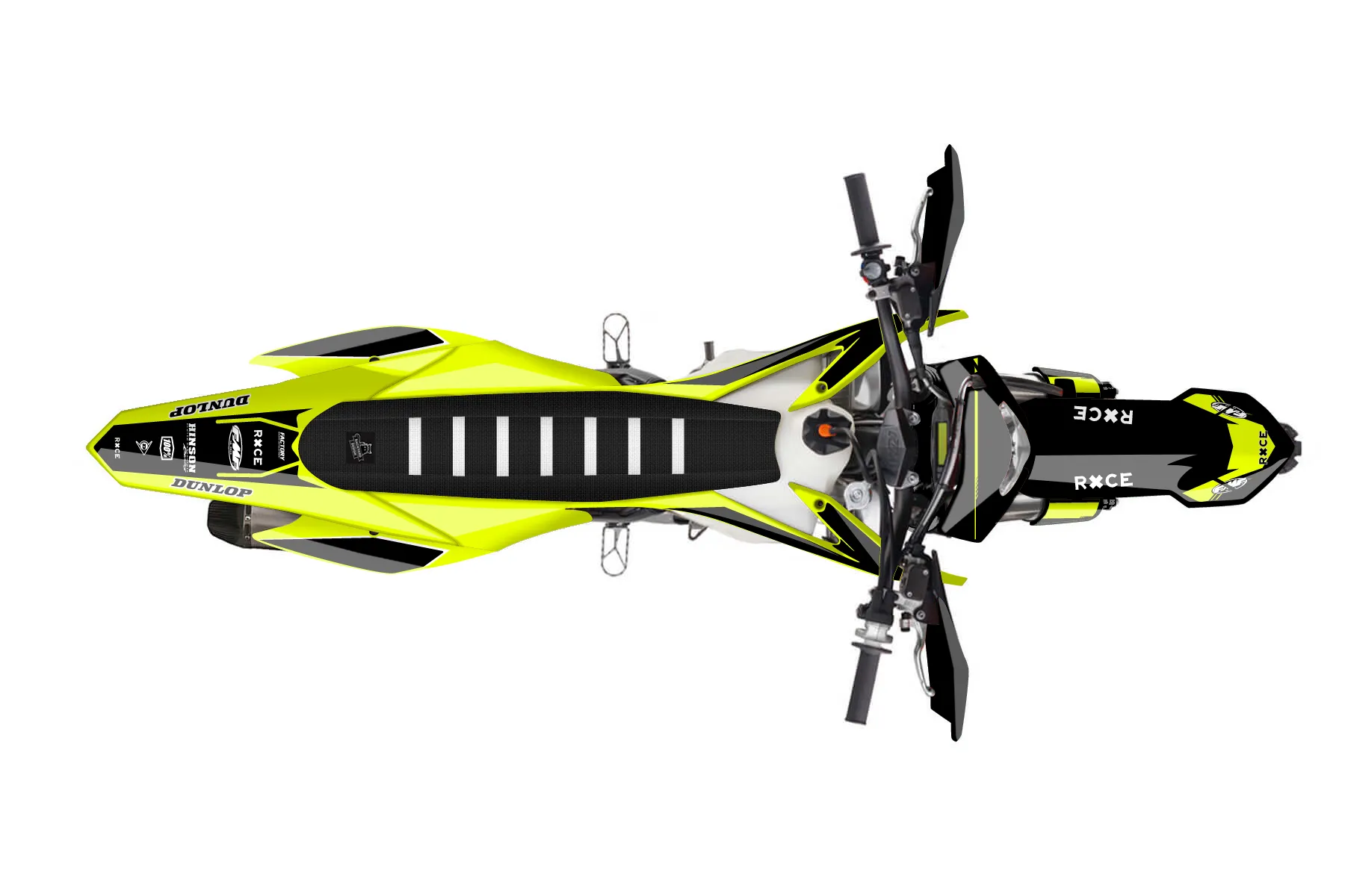 «Style Neon» — готовый комплект графики серии Untucked для KTM Enduro Graphic Kit KTM EXC-F 250 2016. В комплекте: графика на бак и боковые облицовки, крылья (переднее и заднее), передний щиток, номерные таблички, защита вилки. Материал: ПВХ-винил 80 мкр с холодной ламинацией 300 мкр, общая толщина 380 мкр; покрытие глянцевое или матовое на выбор. Устойчив к UV-излучению, воде, бензину и мойке высокого давления. Клей акриловый на сольвентной основе — постоянный, для гибких пластиков. На простых поверхностях монтируется без нагрева; для сложных изгибов рекомендуем фен. Этот пресет можно заказать как есть или взять за основу в конструкторе: поменять цвета, добавить стартовый номер и свой бренд. Производство — 3–5 рабочих дней, доставка по России СДЭКом или Почтой, по СНГ — курьерскими службами.