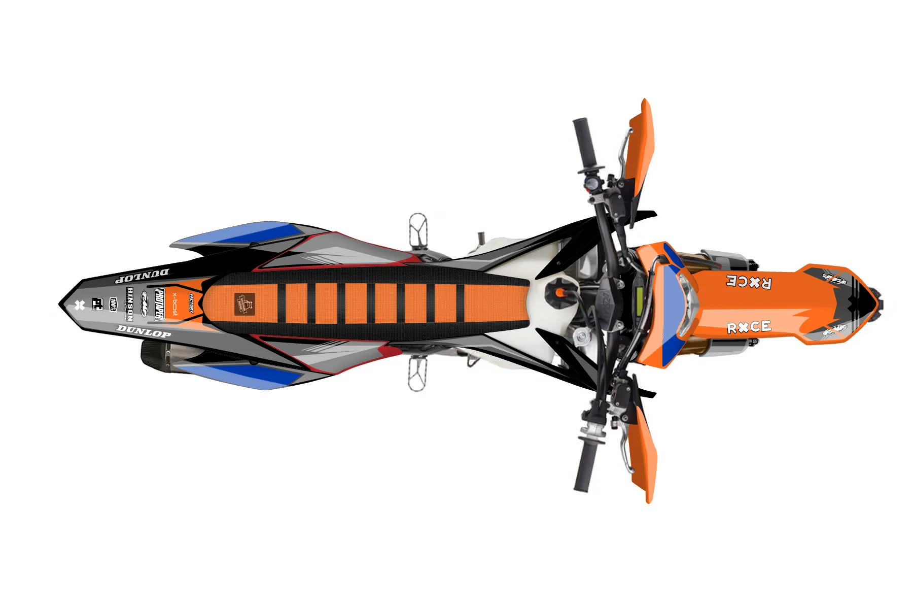 «Ultimate» — готовый комплект графики серии Untucked для KTM Enduro Graphic Kit KTM EXC-F 250 2016. В комплекте: графика на бак и боковые облицовки, крылья (переднее и заднее), передний щиток, номерные таблички, защита вилки. Материал: ПВХ-винил 80 мкр с холодной ламинацией 300 мкр, общая толщина 380 мкр; покрытие глянцевое или матовое на выбор. Устойчив к UV-излучению, воде, бензину и мойке высокого давления. Клей акриловый на сольвентной основе — постоянный, для гибких пластиков. На простых поверхностях монтируется без нагрева; для сложных изгибов рекомендуем фен. Этот пресет можно заказать как есть или взять за основу в конструкторе: поменять цвета, добавить стартовый номер и свой бренд. Производство — 3–5 рабочих дней, доставка по России СДЭКом или Почтой, по СНГ — курьерскими службами.