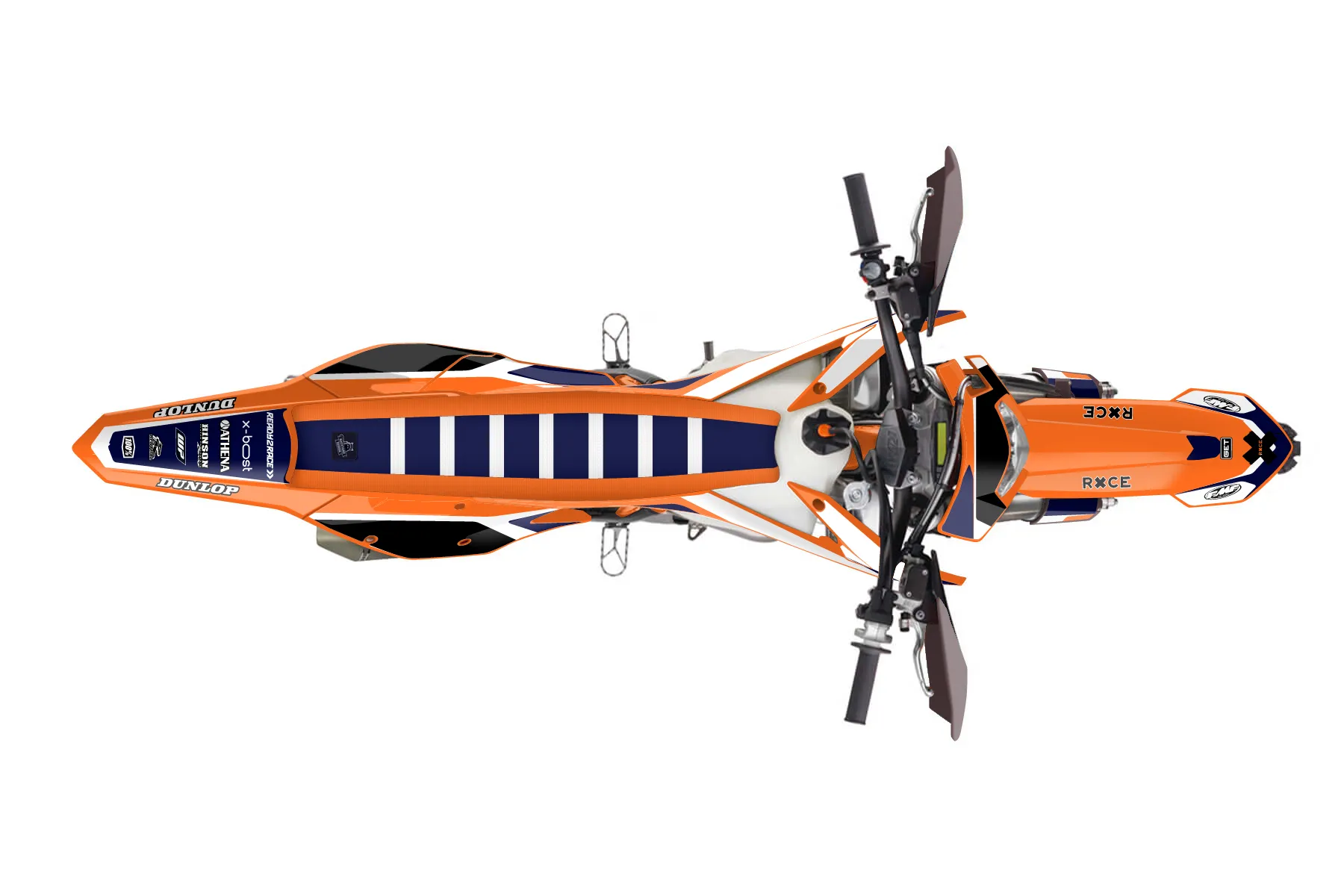 «Chill» — готовый комплект графики серии Flow для KTM Enduro Graphic Kit KTM EXC-F 250 2017. В комплекте: графика на бак и боковые облицовки, крылья (переднее и заднее), передний щиток, номерные таблички, защита вилки. Материал: ПВХ-винил 80 мкр с холодной ламинацией 300 мкр, общая толщина 380 мкр; покрытие глянцевое или матовое на выбор. Устойчив к UV-излучению, воде, бензину и мойке высокого давления. Клей акриловый на сольвентной основе — постоянный, для гибких пластиков. На простых поверхностях монтируется без нагрева; для сложных изгибов рекомендуем фен. Этот пресет можно заказать как есть или взять за основу в конструкторе: поменять цвета, добавить стартовый номер и свой бренд. Производство — 3–5 рабочих дней, доставка по России СДЭКом или Почтой, по СНГ — курьерскими службами.