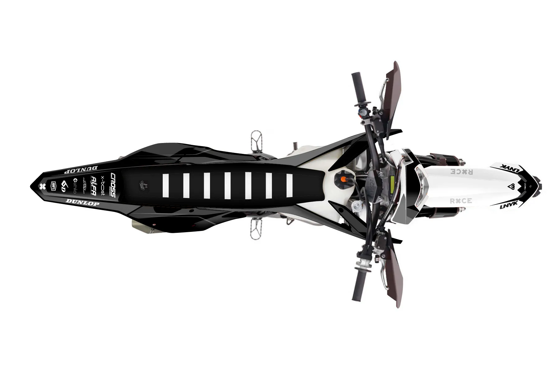 «Decal» — готовый комплект графики серии Flow для KTM Enduro Graphic Kit KTM EXC-F 250 2017. В комплекте: графика на бак и боковые облицовки, крылья (переднее и заднее), передний щиток, номерные таблички, защита вилки. Материал: ПВХ-винил 80 мкр с холодной ламинацией 300 мкр, общая толщина 380 мкр; покрытие глянцевое или матовое на выбор. Устойчив к UV-излучению, воде, бензину и мойке высокого давления. Клей акриловый на сольвентной основе — постоянный, для гибких пластиков. На простых поверхностях монтируется без нагрева; для сложных изгибов рекомендуем фен. Этот пресет можно заказать как есть или взять за основу в конструкторе: поменять цвета, добавить стартовый номер и свой бренд. Производство — 3–5 рабочих дней, доставка по России СДЭКом или Почтой, по СНГ — курьерскими службами.