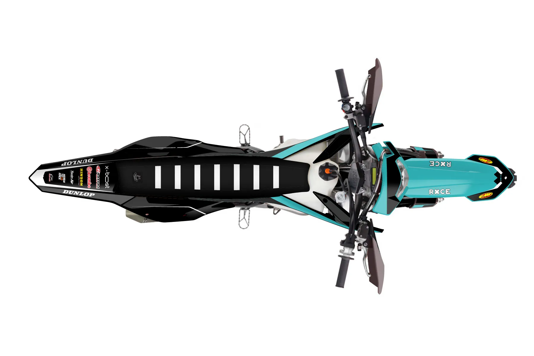 «Trademark» — готовый комплект графики серии Flow для KTM Enduro Graphic Kit KTM EXC-F 250 2017. В комплекте: графика на бак и боковые облицовки, крылья (переднее и заднее), передний щиток, номерные таблички, защита вилки. Материал: ПВХ-винил 80 мкр с холодной ламинацией 300 мкр, общая толщина 380 мкр; покрытие глянцевое или матовое на выбор. Устойчив к UV-излучению, воде, бензину и мойке высокого давления. Клей акриловый на сольвентной основе — постоянный, для гибких пластиков. На простых поверхностях монтируется без нагрева; для сложных изгибов рекомендуем фен. Этот пресет можно заказать как есть или взять за основу в конструкторе: поменять цвета, добавить стартовый номер и свой бренд. Производство — 3–5 рабочих дней, доставка по России СДЭКом или Почтой, по СНГ — курьерскими службами.
