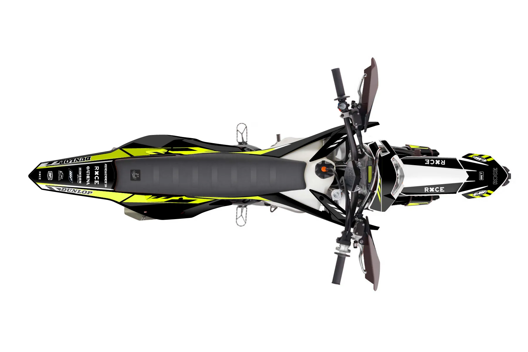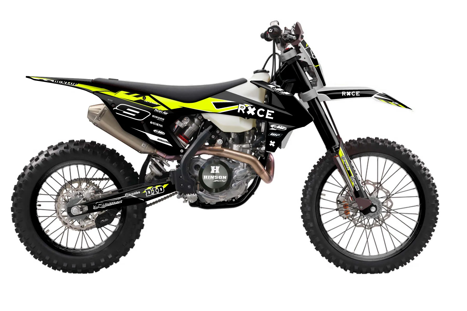 «Daze Fluo» — готовый комплект графики серии Maverick для KTM Enduro Graphic Kit KTM EXC-F 250 2017. В комплекте: графика на бак и боковые облицовки, крылья (переднее и заднее), передний щиток, номерные таблички, защита вилки. Материал: ПВХ-винил 80 мкр с холодной ламинацией 300 мкр, общая толщина 380 мкр; покрытие глянцевое или матовое на выбор. Устойчив к UV-излучению, воде, бензину и мойке высокого давления. Клей акриловый на сольвентной основе — постоянный, для гибких пластиков. На простых поверхностях монтируется без нагрева; для сложных изгибов рекомендуем фен. Этот пресет можно заказать как есть или взять за основу в конструкторе: поменять цвета, добавить стартовый номер и свой бренд. Производство — 3–5 рабочих дней, доставка по России СДЭКом или Почтой, по СНГ — курьерскими службами.