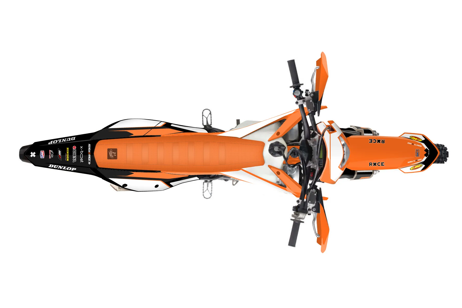 «Predicted» — готовый комплект графики серии Flow для KTM Enduro Graphic Kit KTM EXC-F 250 2020. В комплекте: графика на бак и боковые облицовки, крылья (переднее и заднее), передний щиток, номерные таблички, защита вилки. Материал: ПВХ-винил 80 мкр с холодной ламинацией 300 мкр, общая толщина 380 мкр; покрытие глянцевое или матовое на выбор. Устойчив к UV-излучению, воде, бензину и мойке высокого давления. Клей акриловый на сольвентной основе — постоянный, для гибких пластиков. На простых поверхностях монтируется без нагрева; для сложных изгибов рекомендуем фен. Этот пресет можно заказать как есть или взять за основу в конструкторе: поменять цвета, добавить стартовый номер и свой бренд. Производство — 3–5 рабочих дней, доставка по России СДЭКом или Почтой, по СНГ — курьерскими службами.