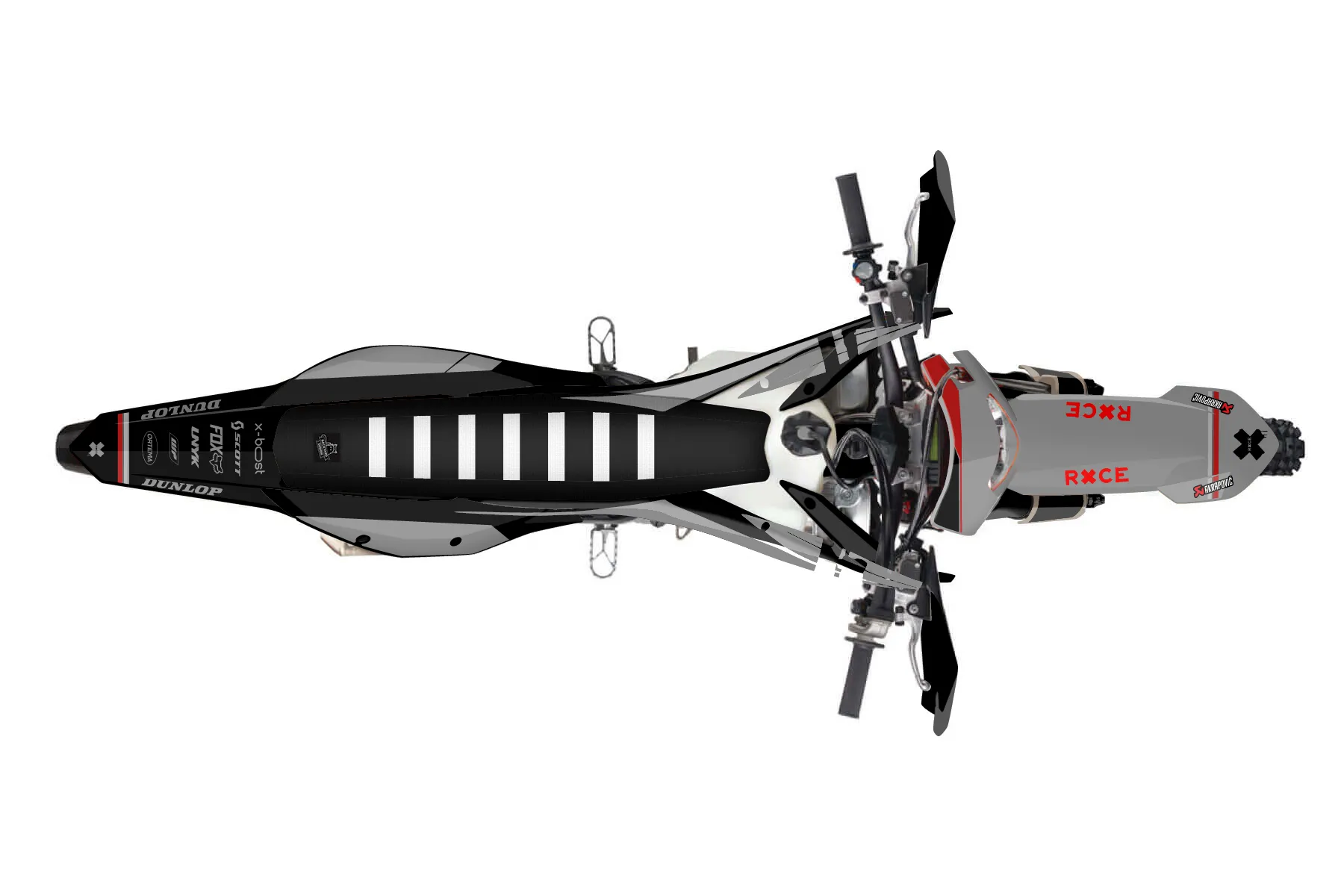 «Vital» — готовый комплект графики серии Maverick для KTM Enduro Graphic Kit KTM EXC-F 250 2020. В комплекте: графика на бак и боковые облицовки, крылья (переднее и заднее), передний щиток, номерные таблички, защита вилки. Материал: ПВХ-винил 80 мкр с холодной ламинацией 300 мкр, общая толщина 380 мкр; покрытие глянцевое или матовое на выбор. Устойчив к UV-излучению, воде, бензину и мойке высокого давления. Клей акриловый на сольвентной основе — постоянный, для гибких пластиков. На простых поверхностях монтируется без нагрева; для сложных изгибов рекомендуем фен. Этот пресет можно заказать как есть или взять за основу в конструкторе: поменять цвета, добавить стартовый номер и свой бренд. Производство — 3–5 рабочих дней, доставка по России СДЭКом или Почтой, по СНГ — курьерскими службами.