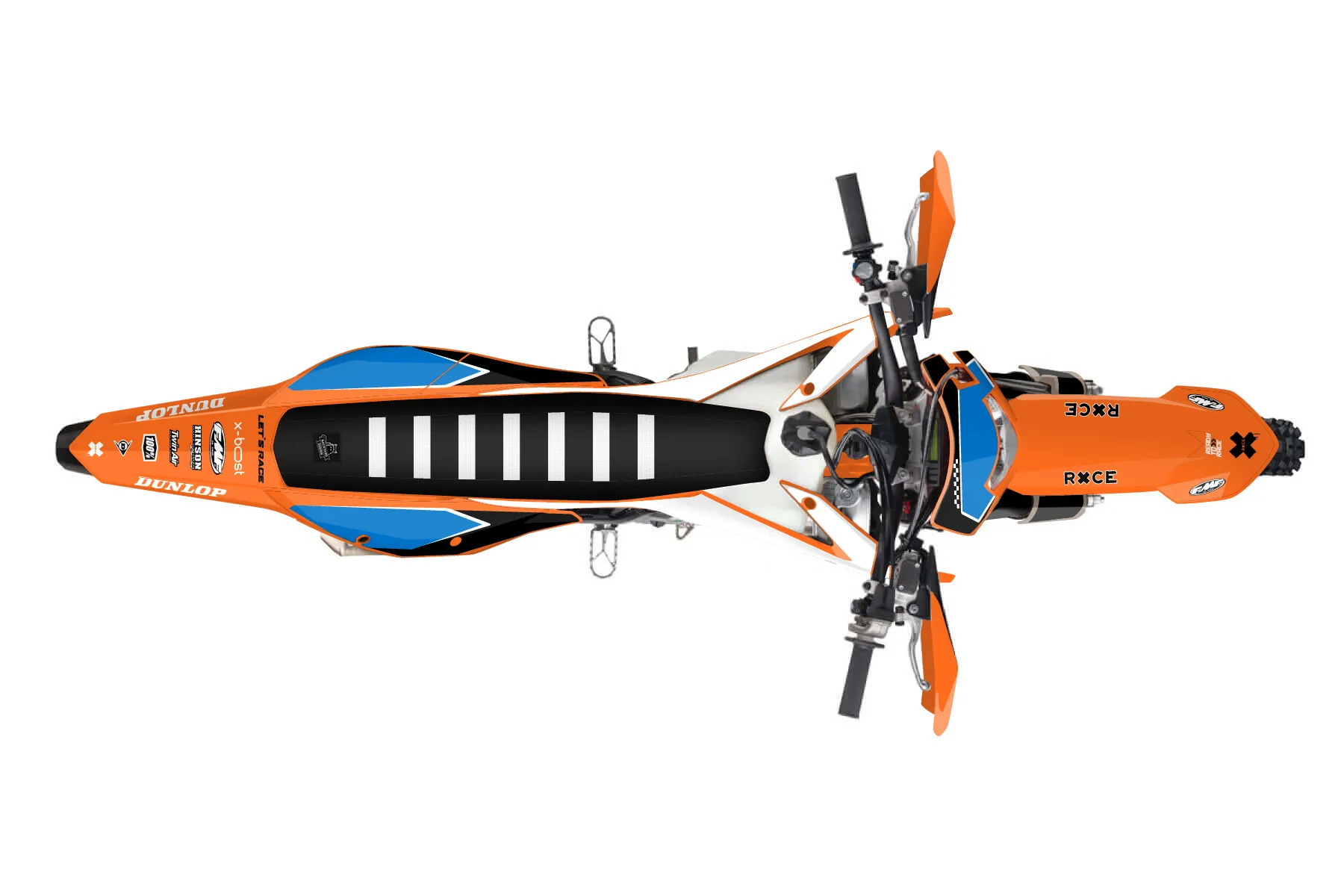 «Clean» — готовый комплект графики серии Staple для KTM Enduro Graphic Kit KTM EXC-F 250 2020. В комплекте: графика на бак и боковые облицовки, крылья (переднее и заднее), передний щиток, номерные таблички, защита вилки. Материал: ПВХ-винил 80 мкр с холодной ламинацией 300 мкр, общая толщина 380 мкр; покрытие глянцевое или матовое на выбор. Устойчив к UV-излучению, воде, бензину и мойке высокого давления. Клей акриловый на сольвентной основе — постоянный, для гибких пластиков. На простых поверхностях монтируется без нагрева; для сложных изгибов рекомендуем фен. Этот пресет можно заказать как есть или взять за основу в конструкторе: поменять цвета, добавить стартовый номер и свой бренд. Производство — 3–5 рабочих дней, доставка по России СДЭКом или Почтой, по СНГ — курьерскими службами.