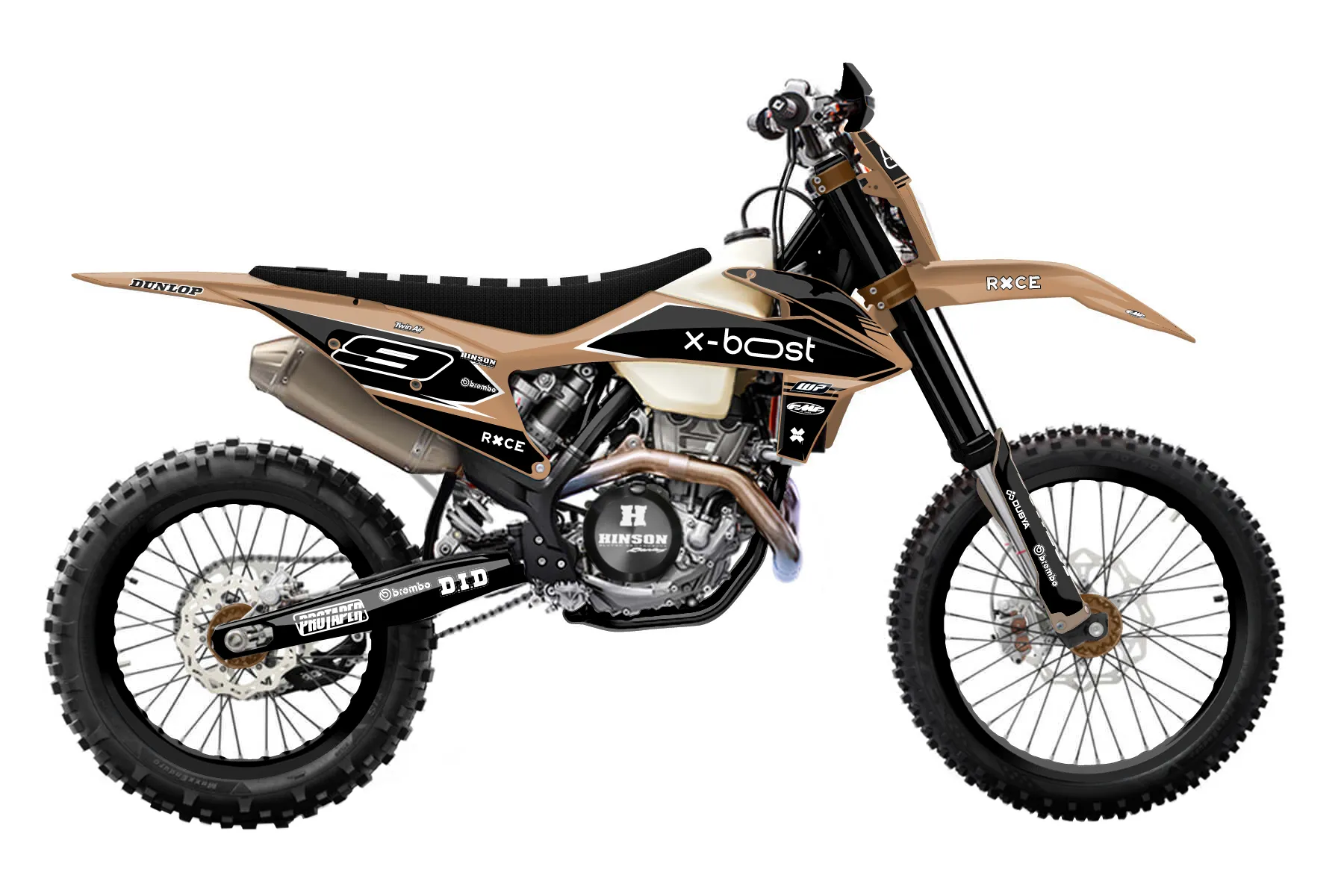 «Entire» — готовый комплект графики серии Untucked для KTM Enduro Graphic Kit KTM EXC-F 250 2020. В комплекте: графика на бак и боковые облицовки, крылья (переднее и заднее), передний щиток, номерные таблички, защита вилки. Материал: ПВХ-винил 80 мкр с холодной ламинацией 300 мкр, общая толщина 380 мкр; покрытие глянцевое или матовое на выбор. Устойчив к UV-излучению, воде, бензину и мойке высокого давления. Клей акриловый на сольвентной основе — постоянный, для гибких пластиков. На простых поверхностях монтируется без нагрева; для сложных изгибов рекомендуем фен. Этот пресет можно заказать как есть или взять за основу в конструкторе: поменять цвета, добавить стартовый номер и свой бренд. Производство — 3–5 рабочих дней, доставка по России СДЭКом или Почтой, по СНГ — курьерскими службами.