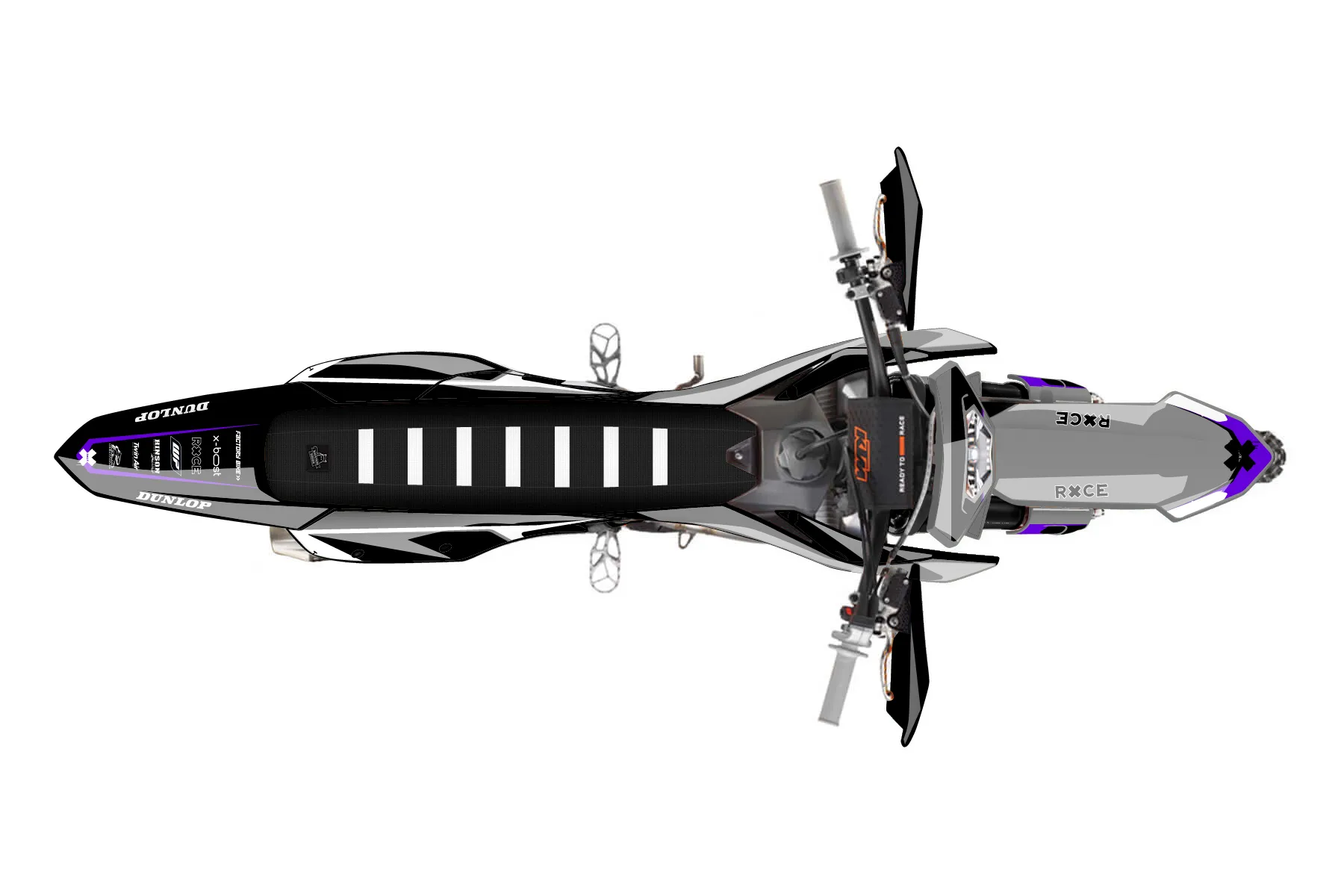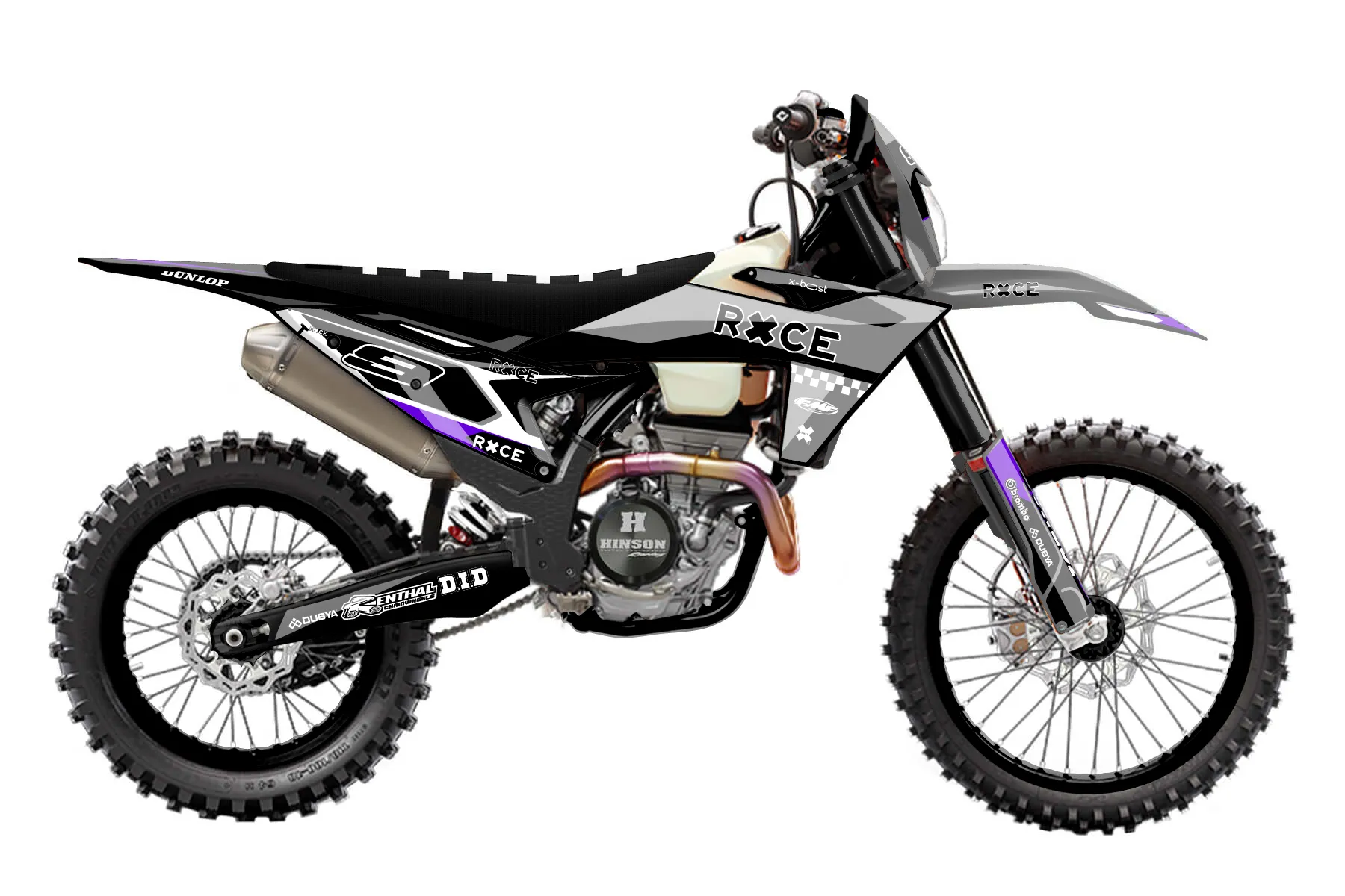 «Cyber Pirate» — готовый комплект графики серии Flow для KTM Enduro Graphic Kit KTM EXC-F 250 2024. В комплекте: графика на бак и боковые облицовки, крылья (переднее и заднее), передний щиток, номерные таблички, защита вилки. Материал: ПВХ-винил 80 мкр с холодной ламинацией 300 мкр, общая толщина 380 мкр; покрытие глянцевое или матовое на выбор. Устойчив к UV-излучению, воде, бензину и мойке высокого давления. Клей акриловый на сольвентной основе — постоянный, для гибких пластиков. На простых поверхностях монтируется без нагрева; для сложных изгибов рекомендуем фен. Этот пресет можно заказать как есть или взять за основу в конструкторе: поменять цвета, добавить стартовый номер и свой бренд. Производство — 3–5 рабочих дней, доставка по России СДЭКом или Почтой, по СНГ — курьерскими службами.