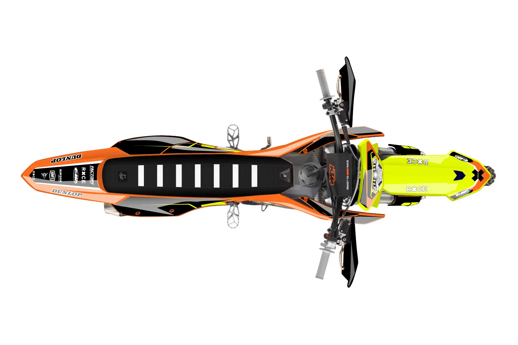 «Fluorescent» — готовый комплект графики серии Flow для KTM Enduro Graphic Kit KTM EXC-F 250 2024. В комплекте: графика на бак и боковые облицовки, крылья (переднее и заднее), передний щиток, номерные таблички, защита вилки. Материал: ПВХ-винил 80 мкр с холодной ламинацией 300 мкр, общая толщина 380 мкр; покрытие глянцевое или матовое на выбор. Устойчив к UV-излучению, воде, бензину и мойке высокого давления. Клей акриловый на сольвентной основе — постоянный, для гибких пластиков. На простых поверхностях монтируется без нагрева; для сложных изгибов рекомендуем фен. Этот пресет можно заказать как есть или взять за основу в конструкторе: поменять цвета, добавить стартовый номер и свой бренд. Производство — 3–5 рабочих дней, доставка по России СДЭКом или Почтой, по СНГ — курьерскими службами.