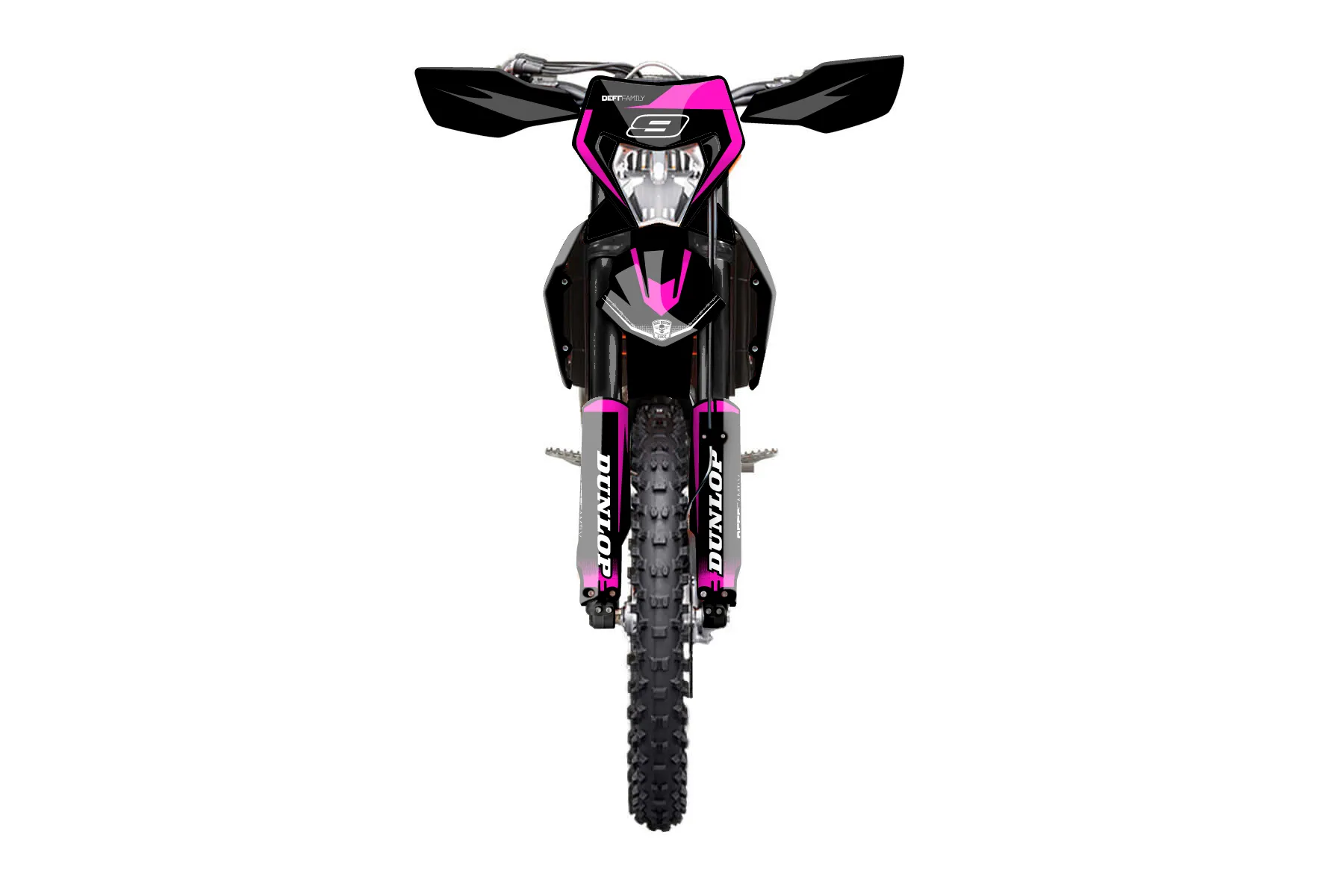 «Extreme» — готовый комплект графики серии Fusion для KTM Enduro Graphic Kit KTM EXC-F 250 2024. В комплекте: графика на бак и боковые облицовки, крылья (переднее и заднее), передний щиток, номерные таблички, защита вилки. Материал: ПВХ-винил 80 мкр с холодной ламинацией 300 мкр, общая толщина 380 мкр; покрытие глянцевое или матовое на выбор. Устойчив к UV-излучению, воде, бензину и мойке высокого давления. Клей акриловый на сольвентной основе — постоянный, для гибких пластиков. На простых поверхностях монтируется без нагрева; для сложных изгибов рекомендуем фен. Этот пресет можно заказать как есть или взять за основу в конструкторе: поменять цвета, добавить стартовый номер и свой бренд. Производство — 3–5 рабочих дней, доставка по России СДЭКом или Почтой, по СНГ — курьерскими службами.