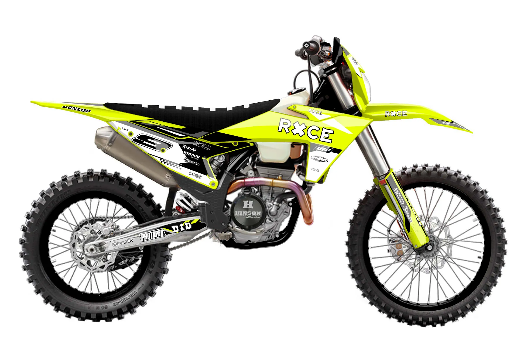 «Bright Neon» — готовый комплект графики серии Maverick для KTM Enduro Graphic Kit KTM EXC-F 250 2024. В комплекте: графика на бак и боковые облицовки, крылья (переднее и заднее), передний щиток, номерные таблички, защита вилки. Материал: ПВХ-винил 80 мкр с холодной ламинацией 300 мкр, общая толщина 380 мкр; покрытие глянцевое или матовое на выбор. Устойчив к UV-излучению, воде, бензину и мойке высокого давления. Клей акриловый на сольвентной основе — постоянный, для гибких пластиков. На простых поверхностях монтируется без нагрева; для сложных изгибов рекомендуем фен. Этот пресет можно заказать как есть или взять за основу в конструкторе: поменять цвета, добавить стартовый номер и свой бренд. Производство — 3–5 рабочих дней, доставка по России СДЭКом или Почтой, по СНГ — курьерскими службами.