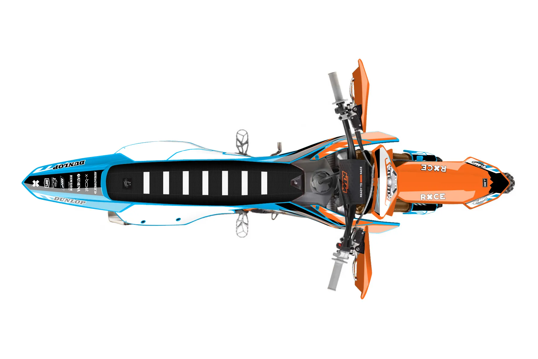 «Checkered» — готовый комплект графики серии Maverick для KTM Enduro Graphic Kit KTM EXC-F 250 2024. В комплекте: графика на бак и боковые облицовки, крылья (переднее и заднее), передний щиток, номерные таблички, защита вилки. Материал: ПВХ-винил 80 мкр с холодной ламинацией 300 мкр, общая толщина 380 мкр; покрытие глянцевое или матовое на выбор. Устойчив к UV-излучению, воде, бензину и мойке высокого давления. Клей акриловый на сольвентной основе — постоянный, для гибких пластиков. На простых поверхностях монтируется без нагрева; для сложных изгибов рекомендуем фен. Этот пресет можно заказать как есть или взять за основу в конструкторе: поменять цвета, добавить стартовый номер и свой бренд. Производство — 3–5 рабочих дней, доставка по России СДЭКом или Почтой, по СНГ — курьерскими службами.