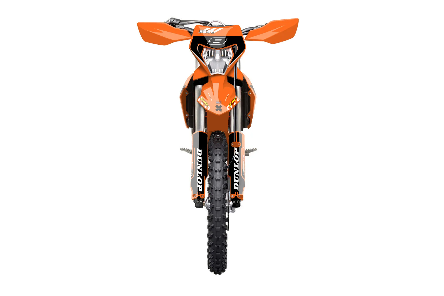 «Express» — готовый комплект графики серии Maverick для KTM Enduro Graphic Kit KTM EXC-F 250 2024. В комплекте: графика на бак и боковые облицовки, крылья (переднее и заднее), передний щиток, номерные таблички, защита вилки. Материал: ПВХ-винил 80 мкр с холодной ламинацией 300 мкр, общая толщина 380 мкр; покрытие глянцевое или матовое на выбор. Устойчив к UV-излучению, воде, бензину и мойке высокого давления. Клей акриловый на сольвентной основе — постоянный, для гибких пластиков. На простых поверхностях монтируется без нагрева; для сложных изгибов рекомендуем фен. Этот пресет можно заказать как есть или взять за основу в конструкторе: поменять цвета, добавить стартовый номер и свой бренд. Производство — 3–5 рабочих дней, доставка по России СДЭКом или Почтой, по СНГ — курьерскими службами.