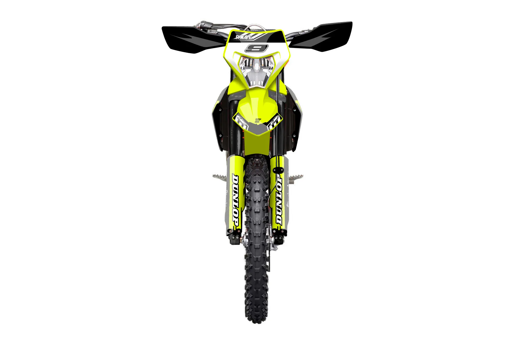 «Volt Neon» — готовый комплект графики серии Maverick для KTM Enduro Graphic Kit KTM EXC-F 250 2024. В комплекте: графика на бак и боковые облицовки, крылья (переднее и заднее), передний щиток, номерные таблички, защита вилки. Материал: ПВХ-винил 80 мкр с холодной ламинацией 300 мкр, общая толщина 380 мкр; покрытие глянцевое или матовое на выбор. Устойчив к UV-излучению, воде, бензину и мойке высокого давления. Клей акриловый на сольвентной основе — постоянный, для гибких пластиков. На простых поверхностях монтируется без нагрева; для сложных изгибов рекомендуем фен. Этот пресет можно заказать как есть или взять за основу в конструкторе: поменять цвета, добавить стартовый номер и свой бренд. Производство — 3–5 рабочих дней, доставка по России СДЭКом или Почтой, по СНГ — курьерскими службами.