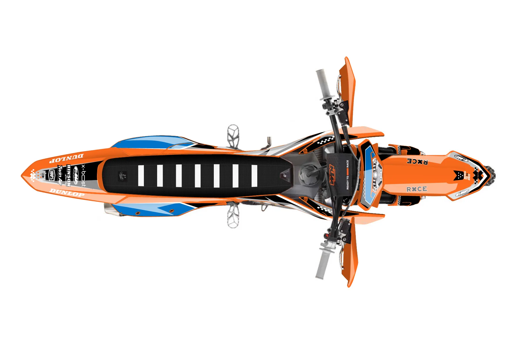 «Clean» — готовый комплект графики серии Staple для KTM Enduro Graphic Kit KTM EXC-F 250 2024. В комплекте: графика на бак и боковые облицовки, крылья (переднее и заднее), передний щиток, номерные таблички, защита вилки. Материал: ПВХ-винил 80 мкр с холодной ламинацией 300 мкр, общая толщина 380 мкр; покрытие глянцевое или матовое на выбор. Устойчив к UV-излучению, воде, бензину и мойке высокого давления. Клей акриловый на сольвентной основе — постоянный, для гибких пластиков. На простых поверхностях монтируется без нагрева; для сложных изгибов рекомендуем фен. Этот пресет можно заказать как есть или взять за основу в конструкторе: поменять цвета, добавить стартовый номер и свой бренд. Производство — 3–5 рабочих дней, доставка по России СДЭКом или Почтой, по СНГ — курьерскими службами.