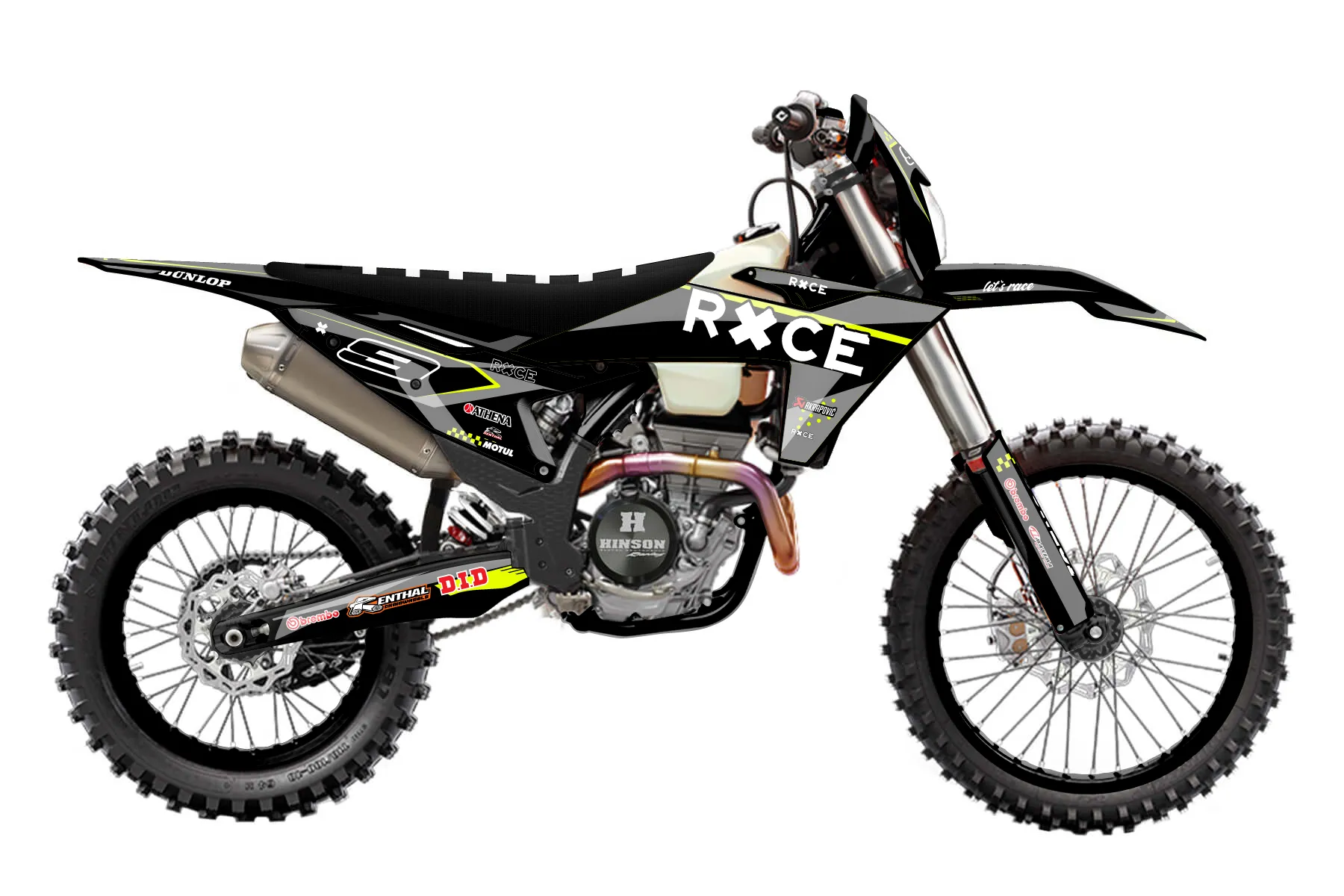 «Refuse Neon» — готовый комплект графики серии Staple для KTM Enduro Graphic Kit KTM EXC-F 250 2024. В комплекте: графика на бак и боковые облицовки, крылья (переднее и заднее), передний щиток, номерные таблички, защита вилки. Материал: ПВХ-винил 80 мкр с холодной ламинацией 300 мкр, общая толщина 380 мкр; покрытие глянцевое или матовое на выбор. Устойчив к UV-излучению, воде, бензину и мойке высокого давления. Клей акриловый на сольвентной основе — постоянный, для гибких пластиков. На простых поверхностях монтируется без нагрева; для сложных изгибов рекомендуем фен. Этот пресет можно заказать как есть или взять за основу в конструкторе: поменять цвета, добавить стартовый номер и свой бренд. Производство — 3–5 рабочих дней, доставка по России СДЭКом или Почтой, по СНГ — курьерскими службами.